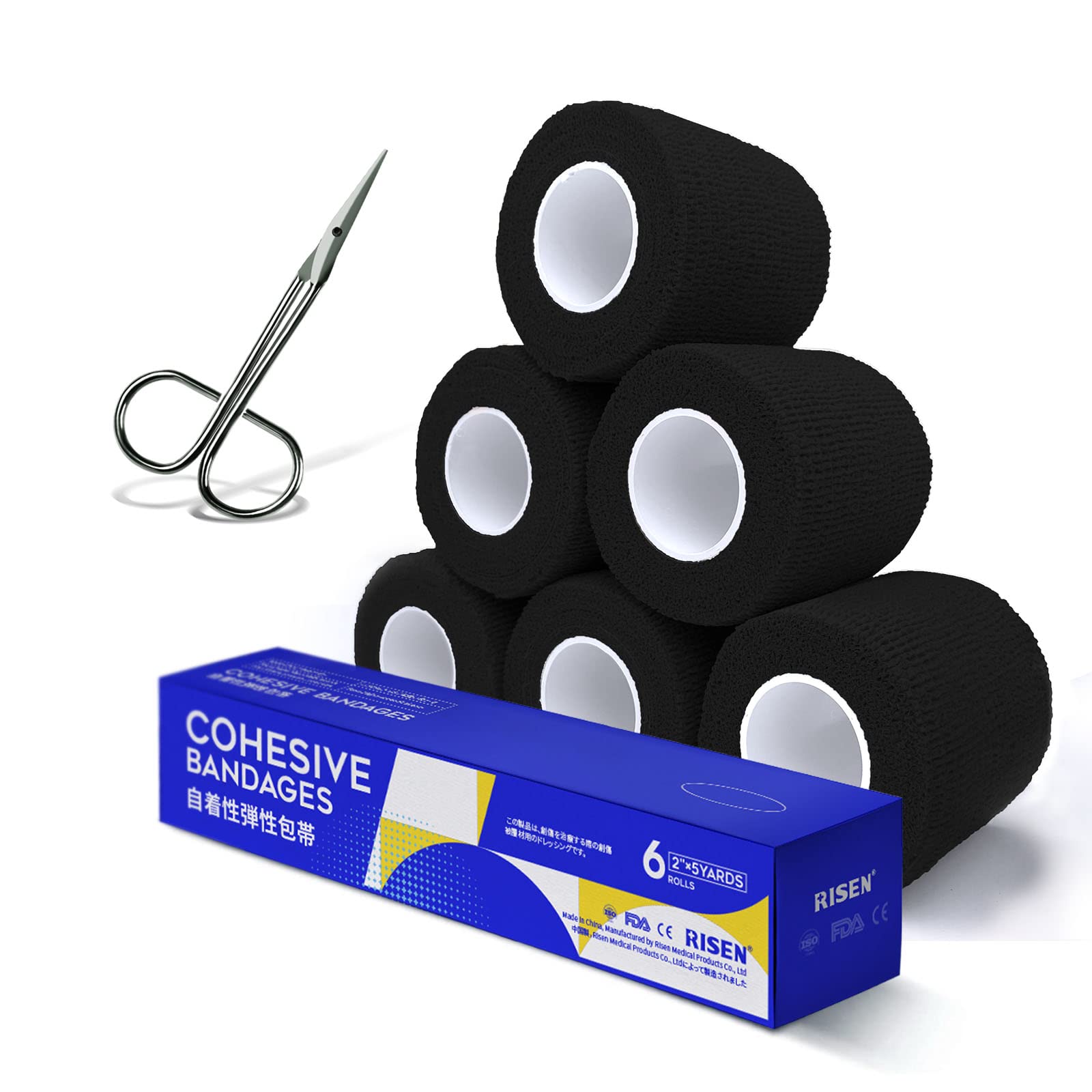 RISEN Vendaje cohesivo de 2 pulgadas x 5 yardas, 6 rollos, cinta médica autoadherente, gasa adhesiva flexible y transpirable, idea