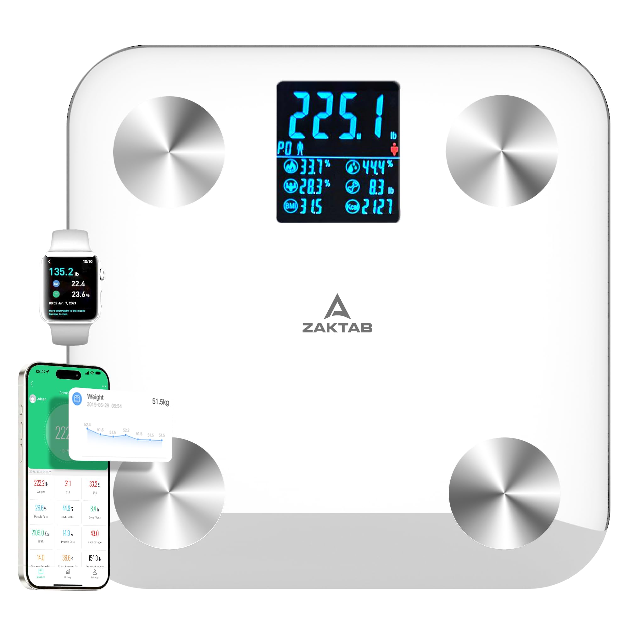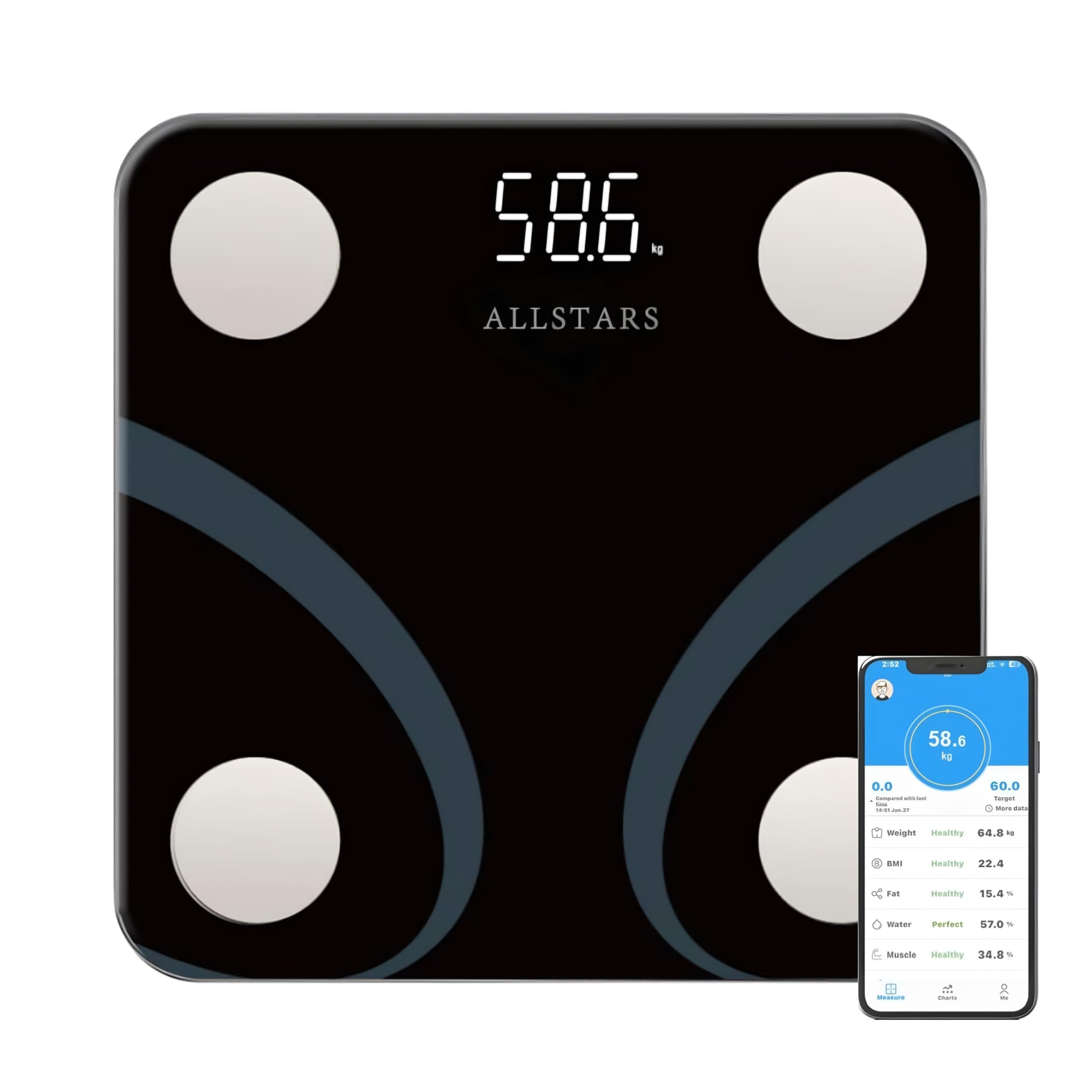 Báscula inteligente de grasa corporal de 8 electrodos con tecnología BIA para composición de cuerpo completo – Mide peso, IMC, mas