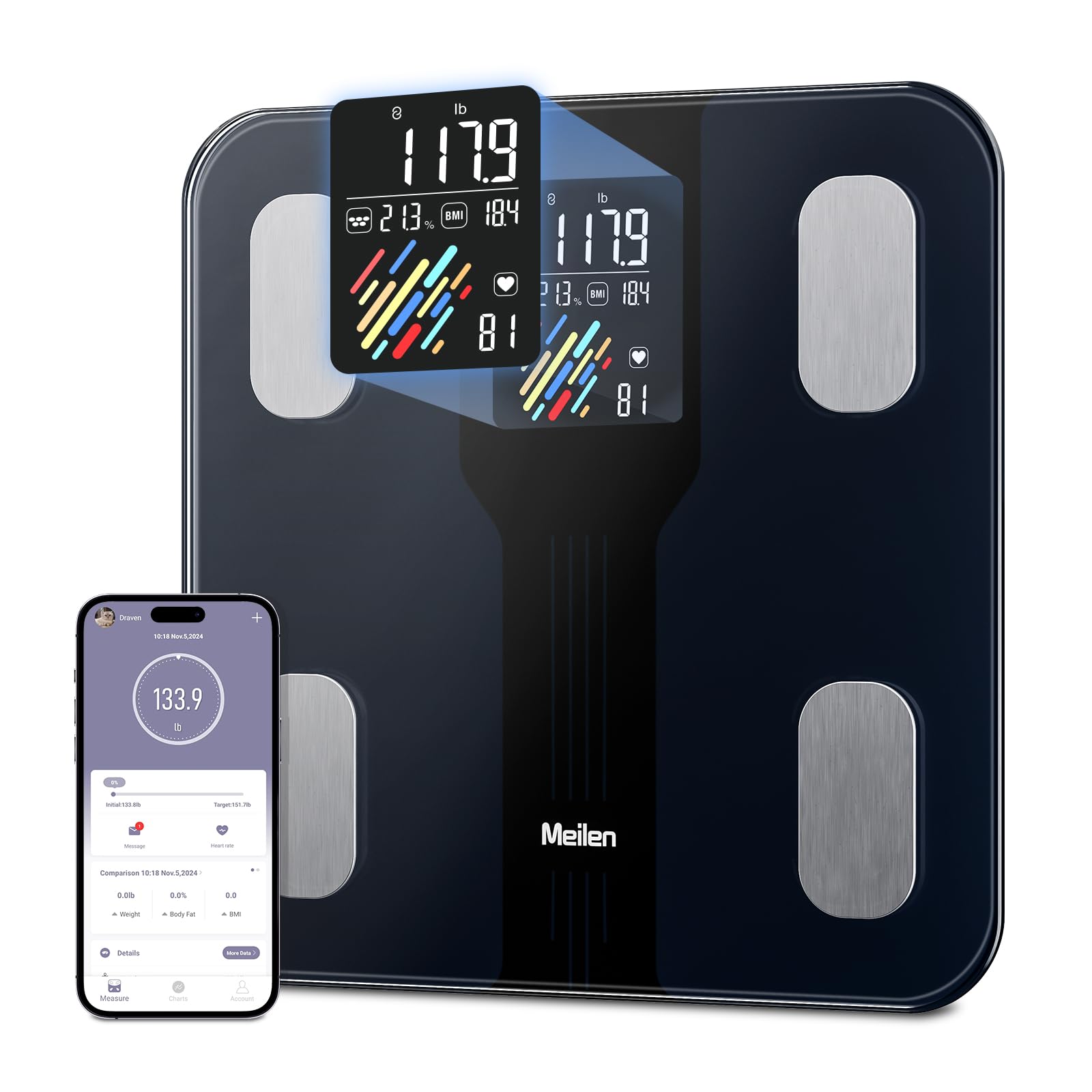 Smart Scale for Body Weight, Body Fat, with App, 14 Body Composition Measurements, Smart Bluetooth Bathroom Scale with LED Display