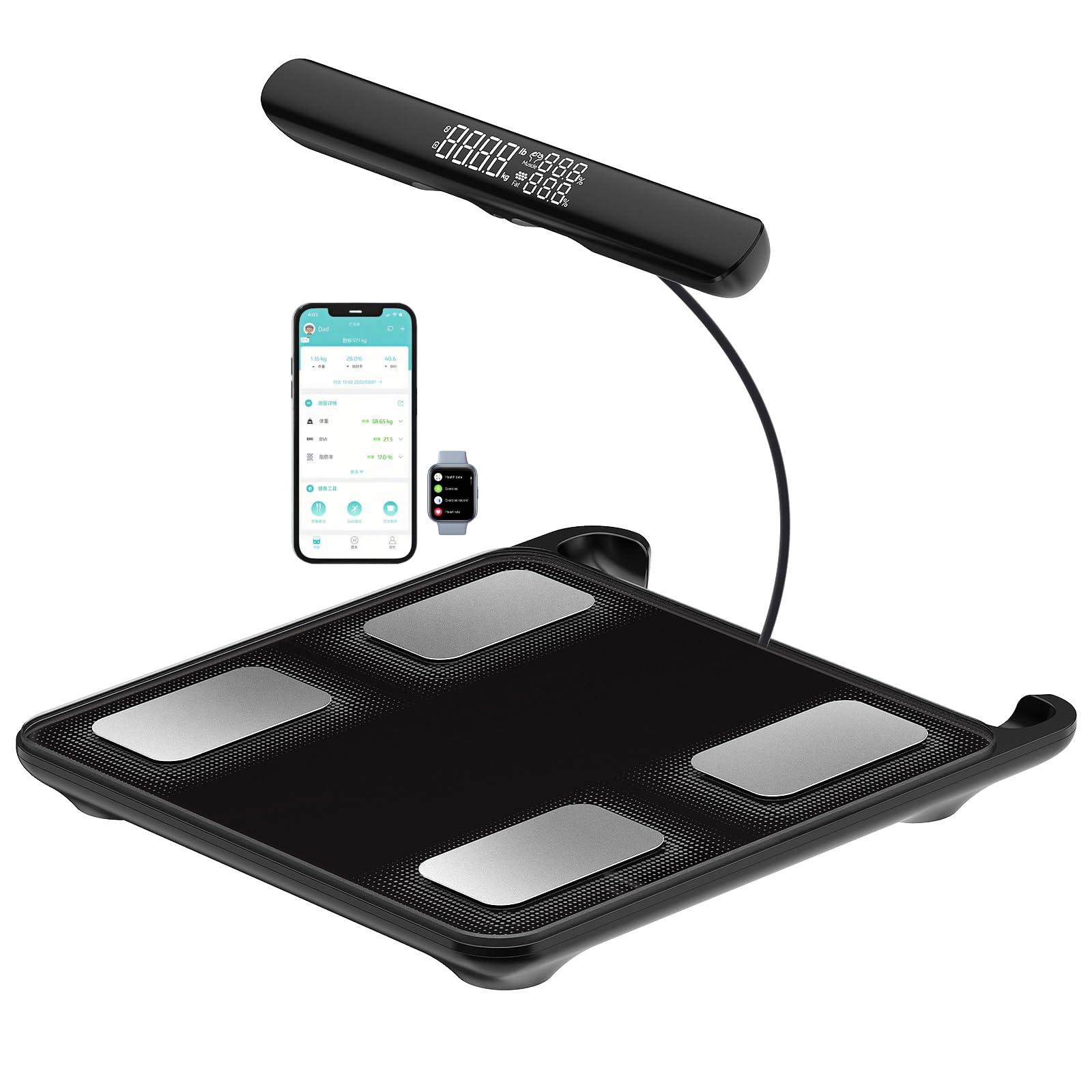 Báscula inteligente Body Pod con IMC, masa muscular de grasa corporal, 8 sensores de composición corporal más precisa con aplicaci