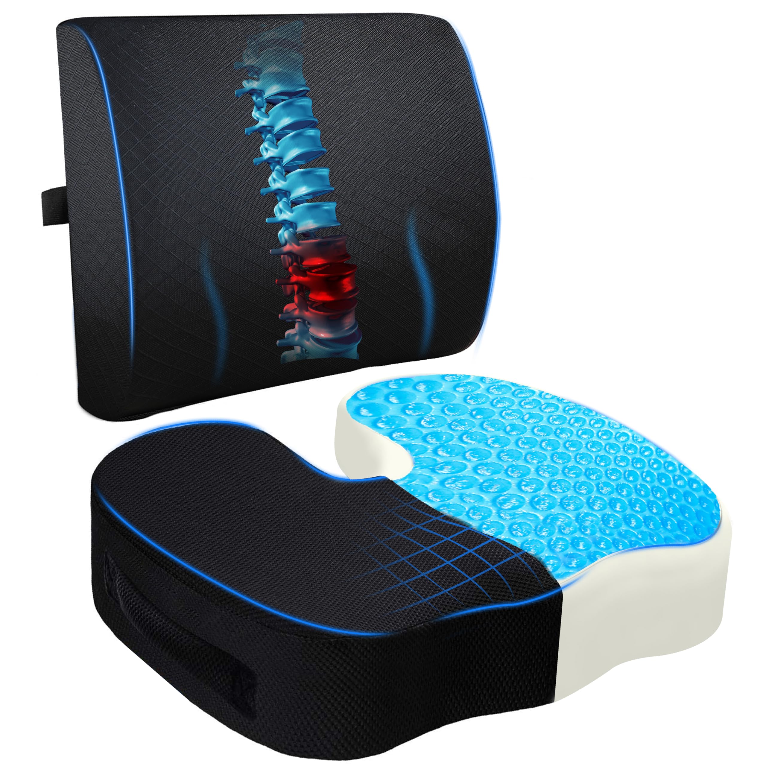EcoNour Cojín de asiento de gel y almohada de apoyo lumbar | Soporte de respaldo para silla de oficina, juegos, silla de ruedas y