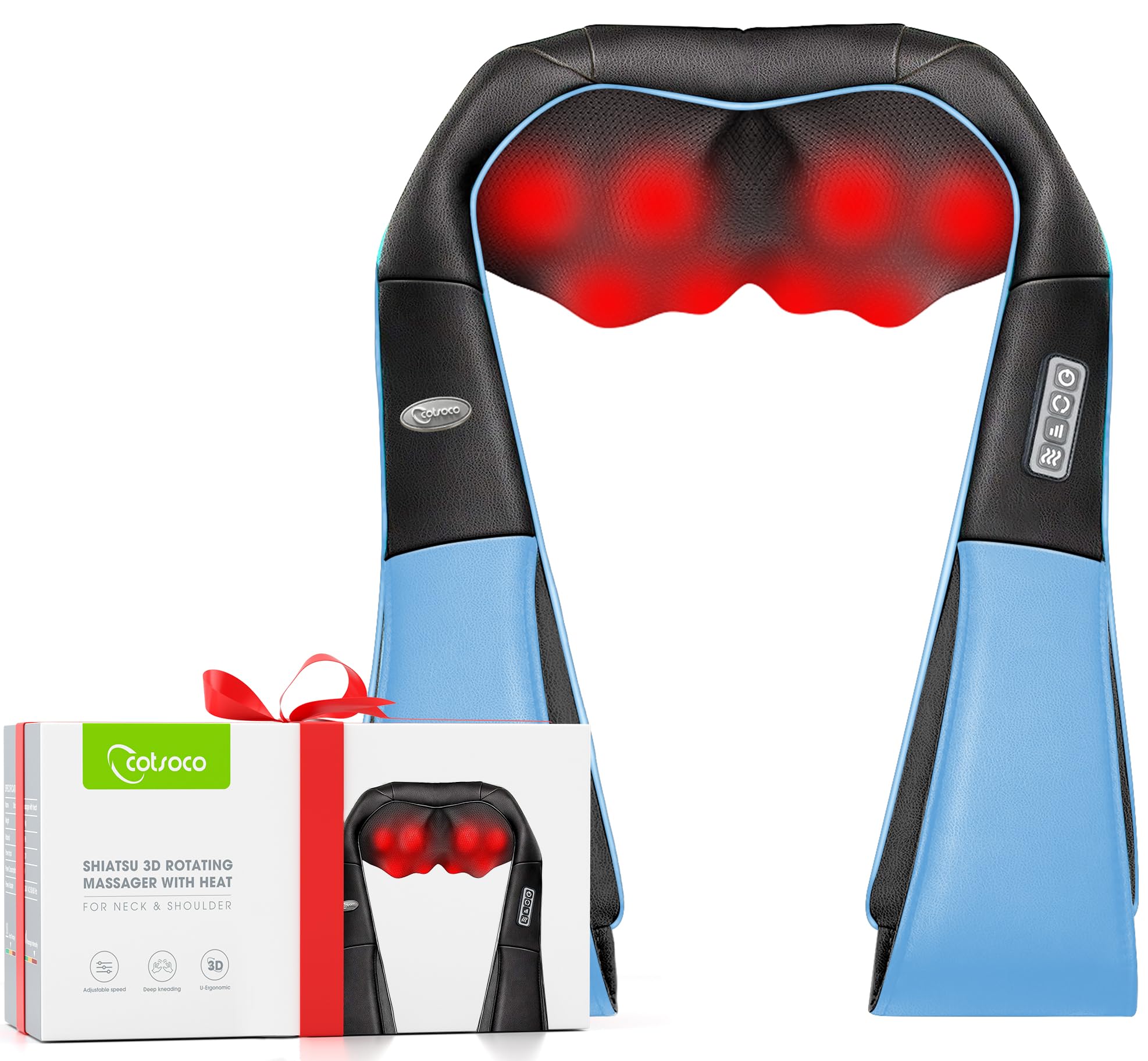 cotsoco Masajeador de cuello, masajeador shiatsu de cuello y espalda con calor para aliviar el dolor, almohada de masaje de amasam