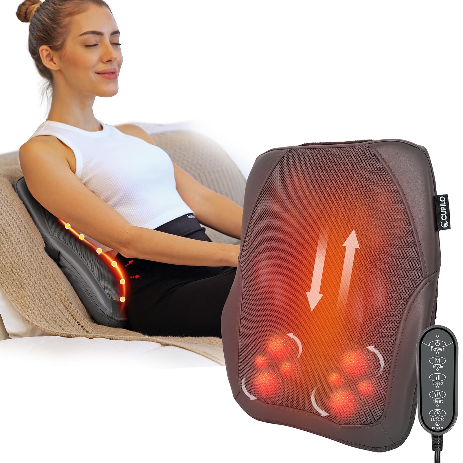 COMFIER Almohada de masaje para espalda, almohadilla térmica para silla de masaje con 3 modos de masaje de vibración, cojín de asi
