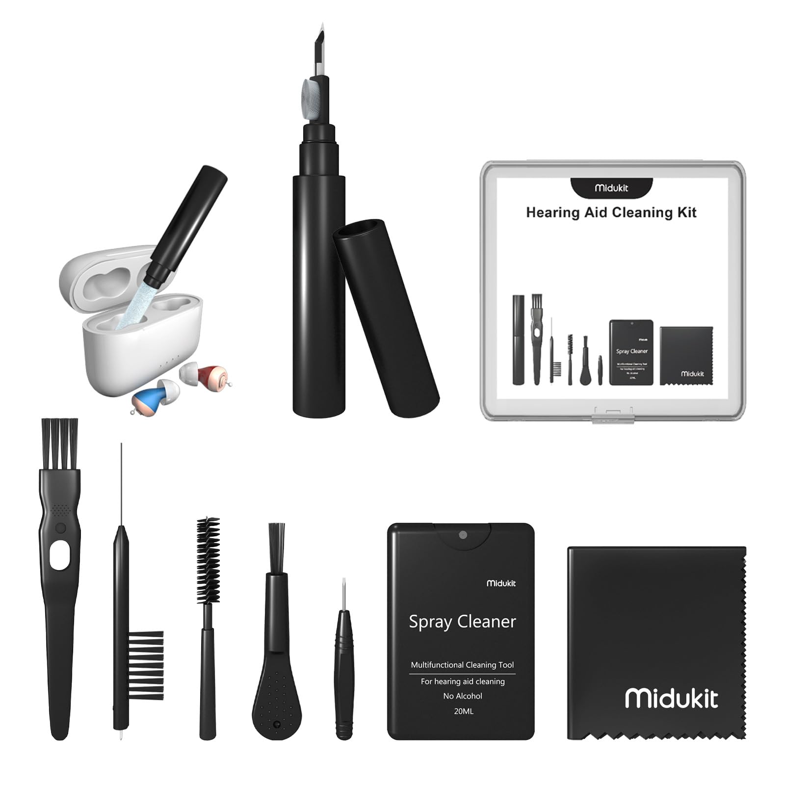Kit de limpieza de audífonos de alta calidad, compatible con audífonos recargables con Bluetooth, Oticon, Phonak, herramientas de