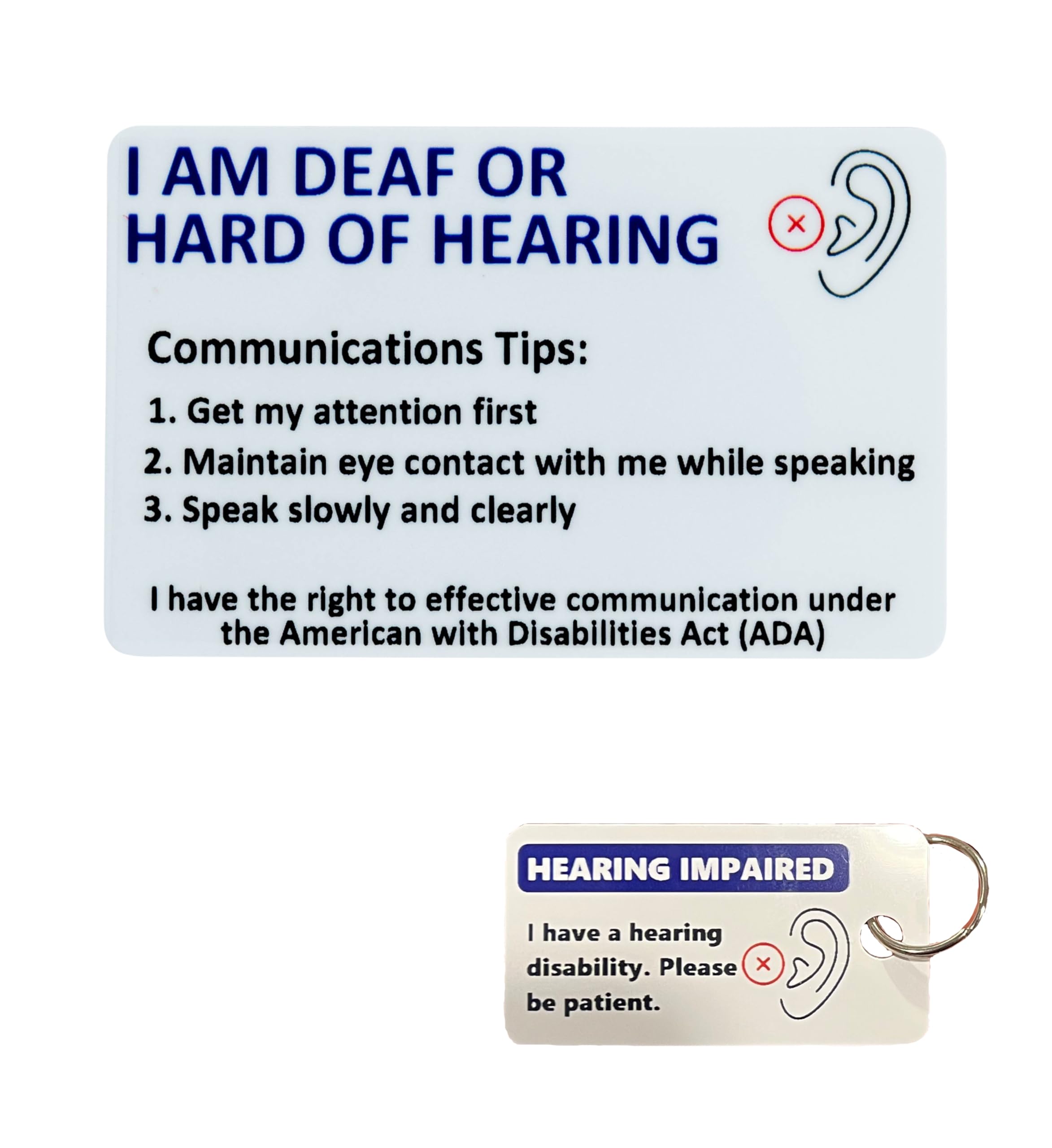Tarjeta de concientización para sordos con etiqueta de llave con dificultad de audición