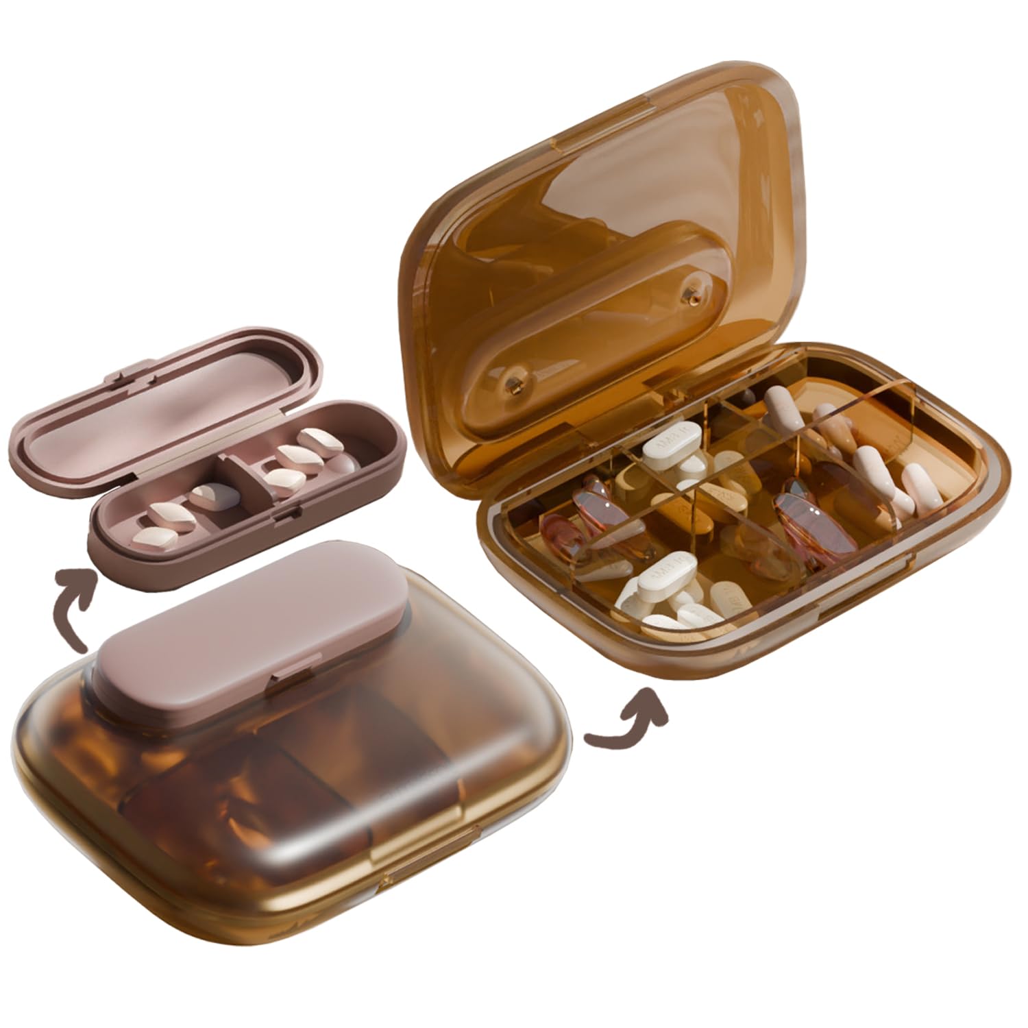 Paquete de 6 organizadores de píldoras, bolsillo pequeño, estuche para píldoras Am Pm, portátil, dos compartimentos, viaje redondo