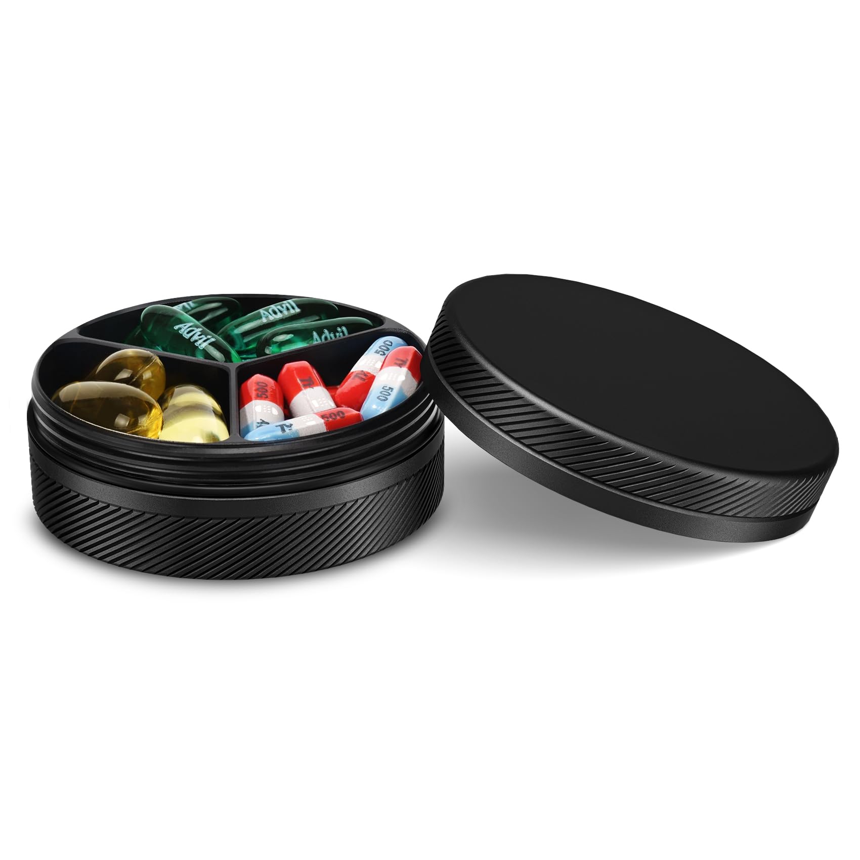 Pastillero de 4 piezas, pastillero de viaje, soporte para píldoras, contenedor portátil, mini caja de metal, pequeñas cajas de píl