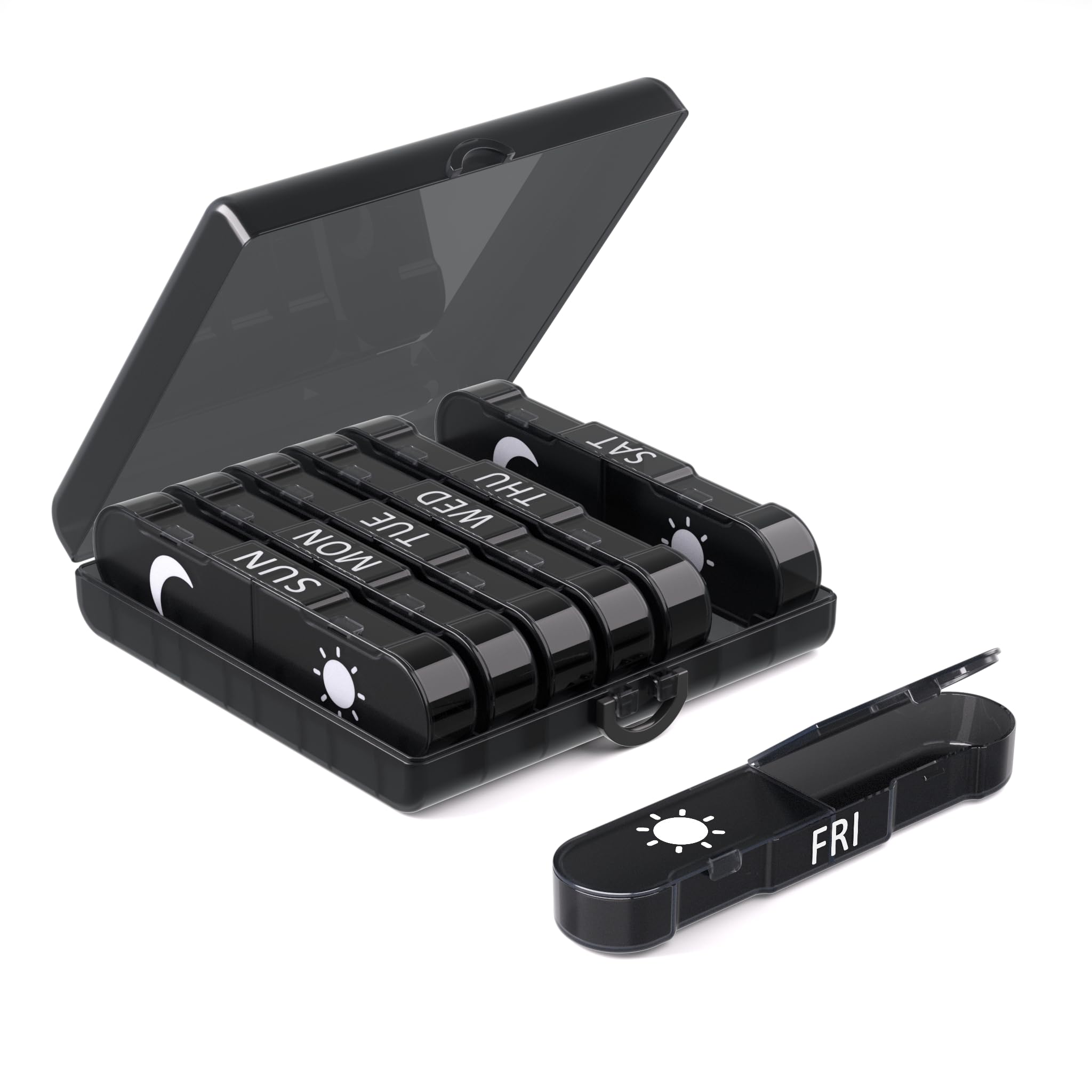 Pastillero semanal de 7 días y estuche diario de vitaminas, pastillero para manejo de medicamentos (paquete de 1 negro)
