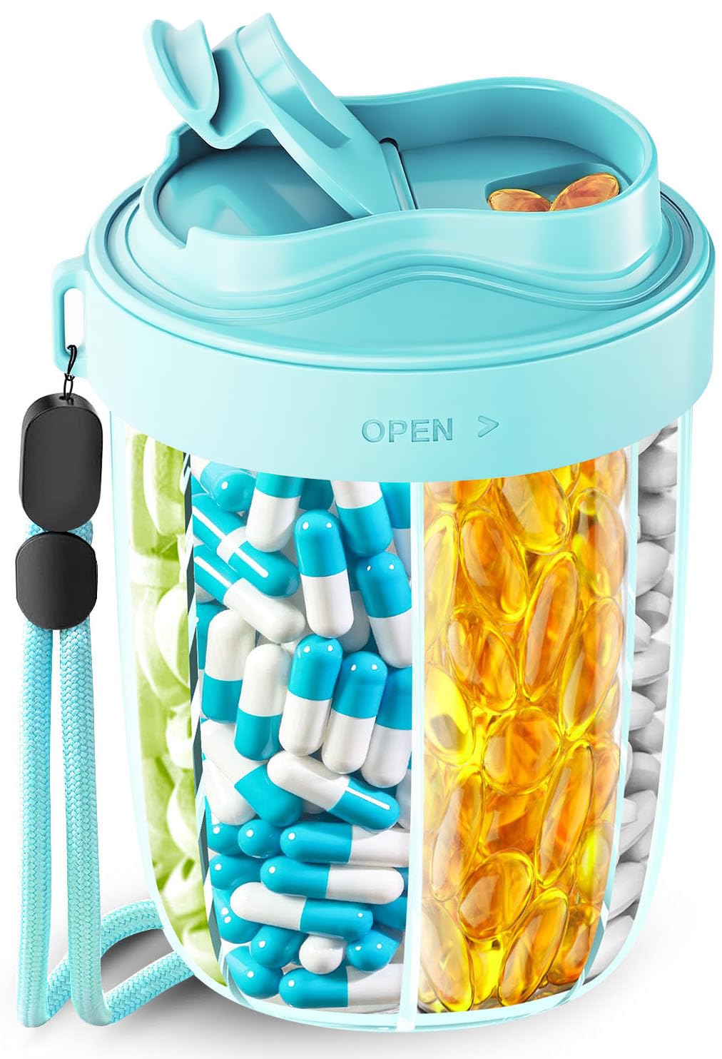 MURRI&MURRDI Pastillero de viaje, 6 compartimentos pequeño, pastillero diario para guardar vitaminas, pastillero portátil para bol