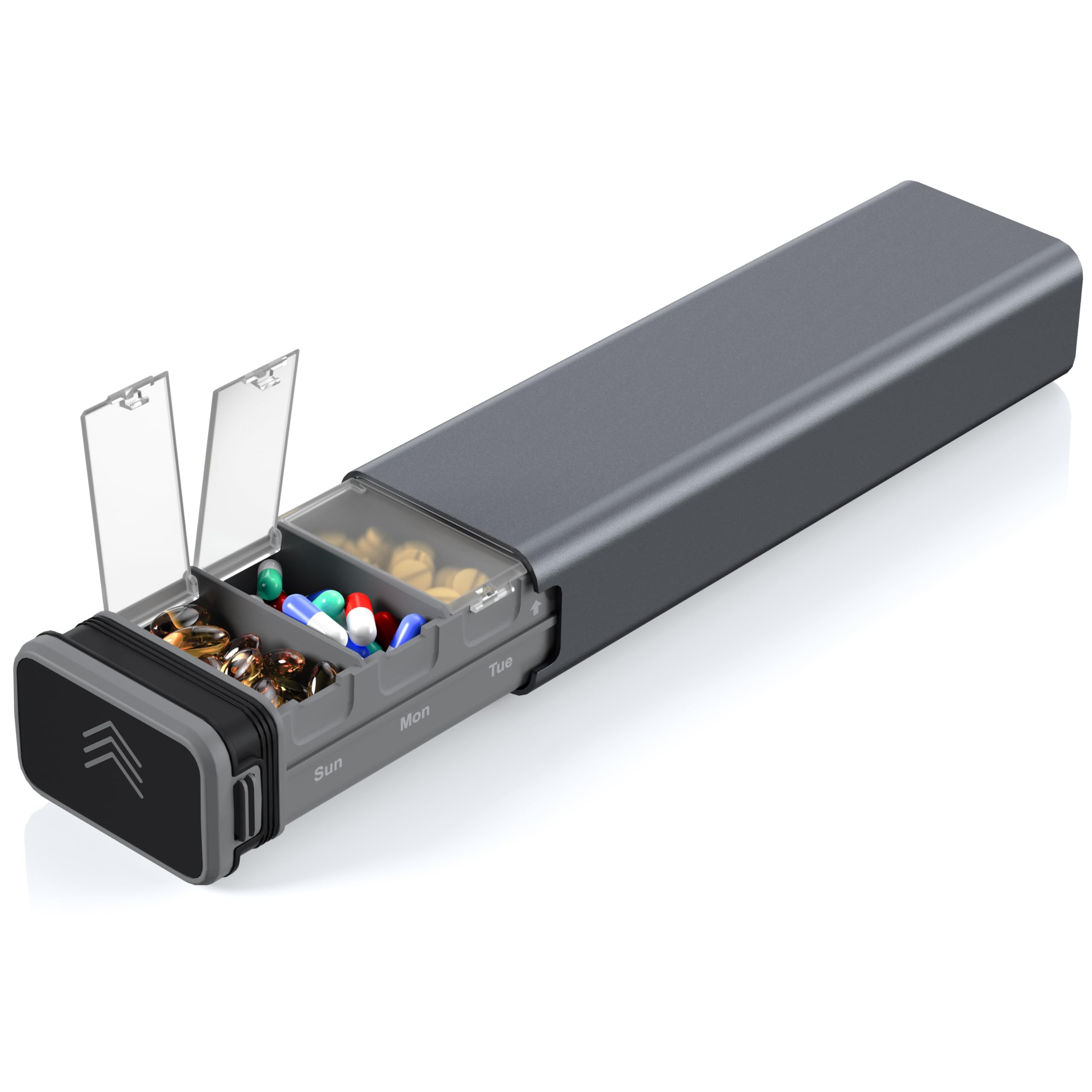 Pastillero de metal semanal de 7 días, pastillero diario de aluminio premium, lindo pastillero portátil, pastillero de gran capaci