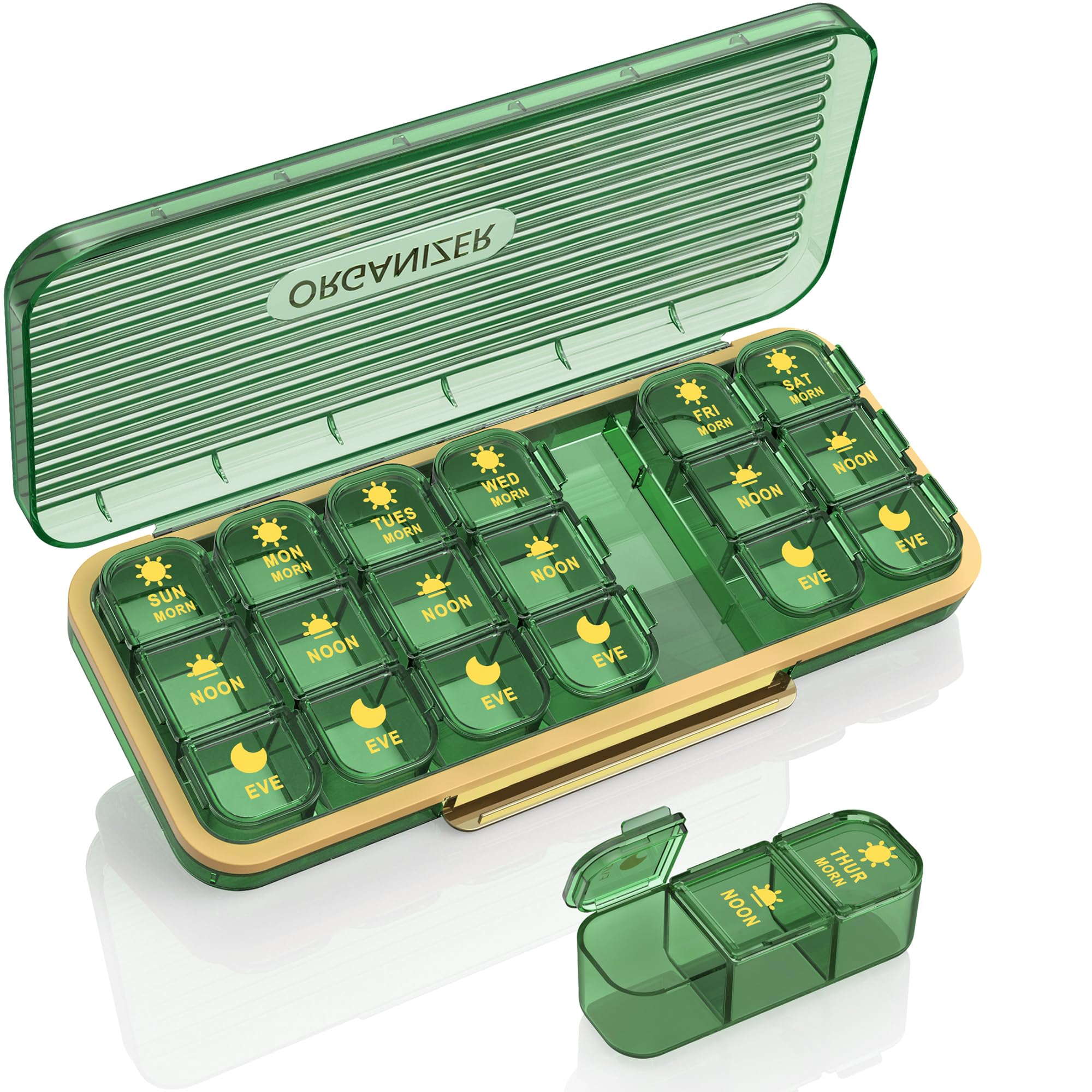 Organizador semanal de pastillas 7 días 3 veces, organizador de píldoras portátil, sin BPA, recordatorio diario de pastilleros, or