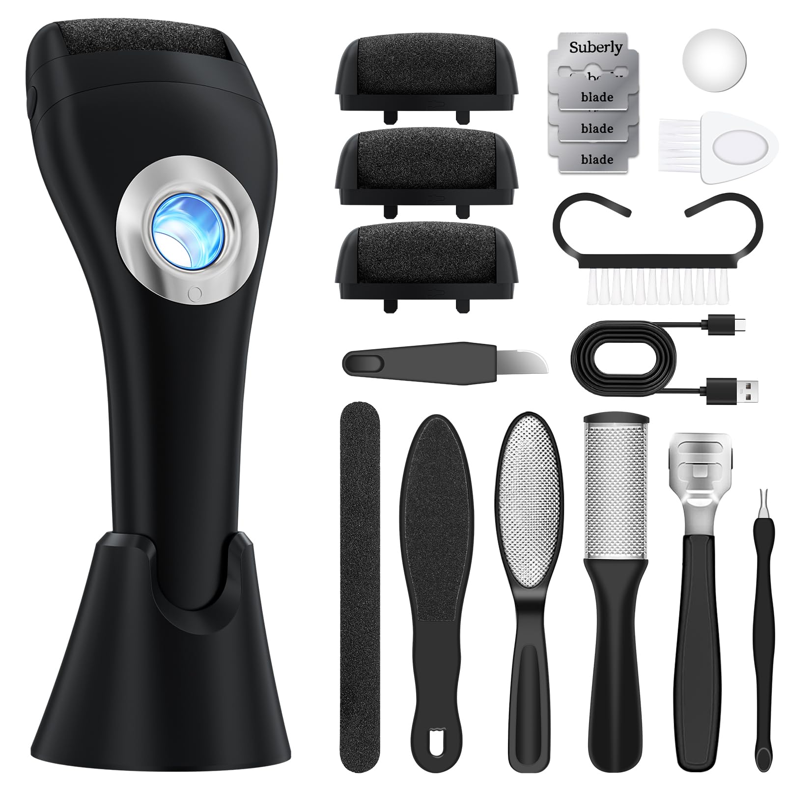Removedor de callos para pies, con soporte y luz de anillo, kit de pedicura portátil, lima de pies, removedor de callos, herramien