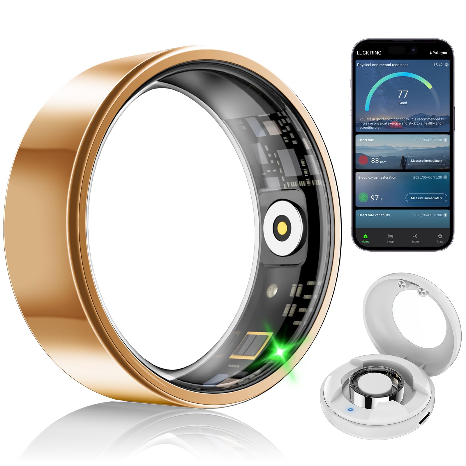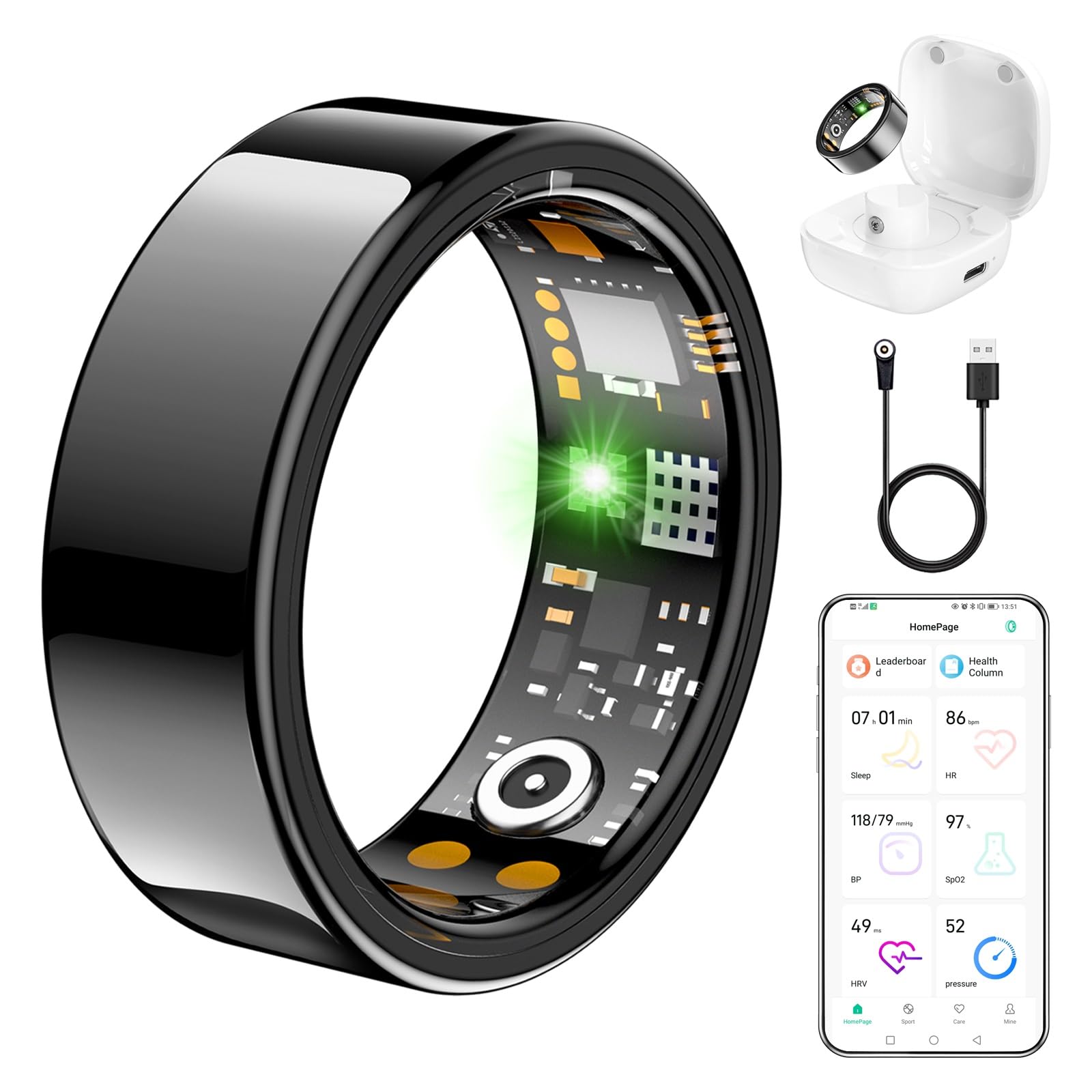 Smart Health Ring – Rastreador de salud del sueño para mujeres y hombres con frecuencia cardíaca, oxígeno en sangre, monitor de su