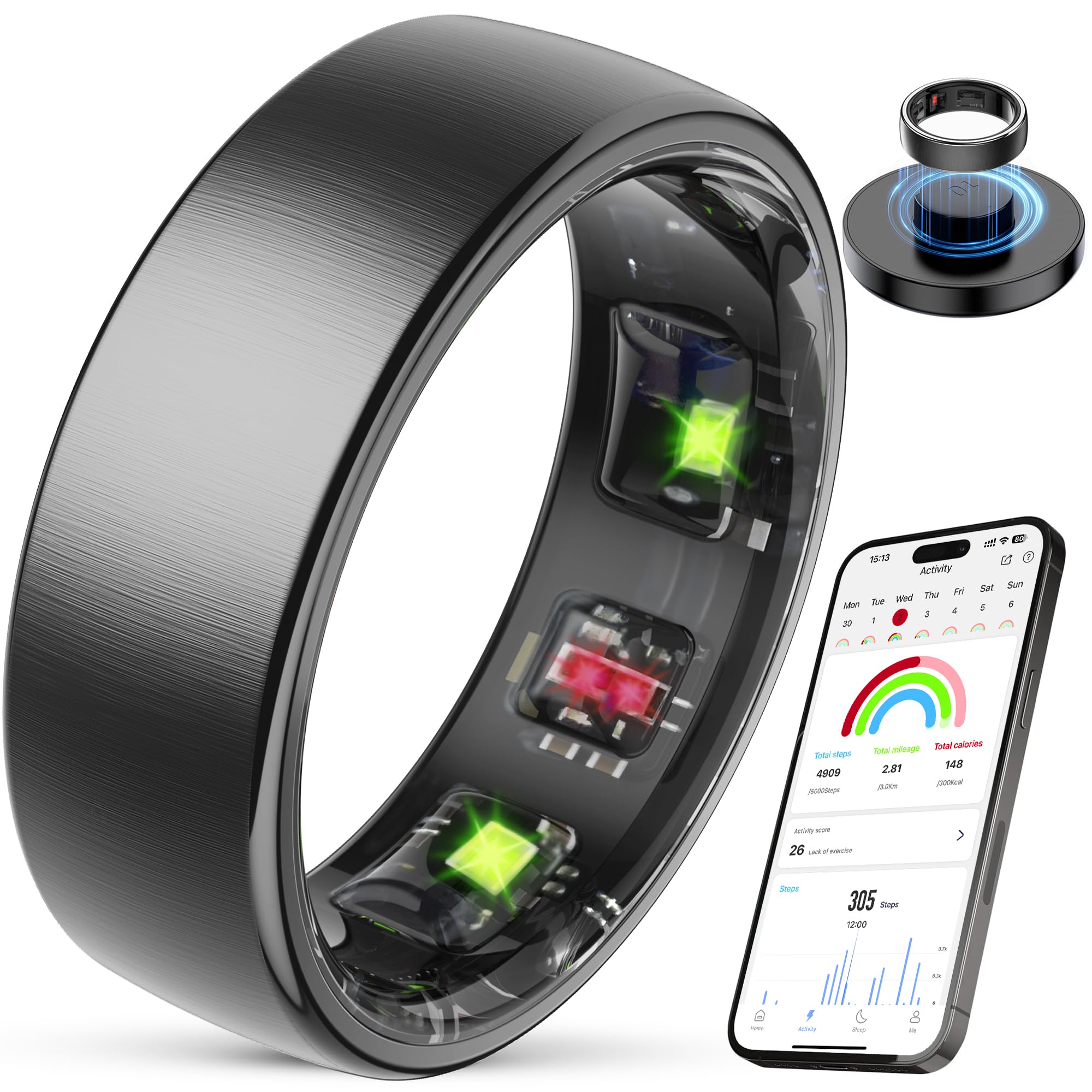Ring Health Tracker para mujeres y hombres, anillo de ajuste con frecuencia cardíaca, oxígeno en sangre, monitor de sueño, caloría
