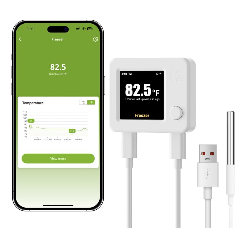 Termómetro WiFi para refrigerador con alarma de congelador, sensor de temperatura digital con aplicación y alerta de correo electr