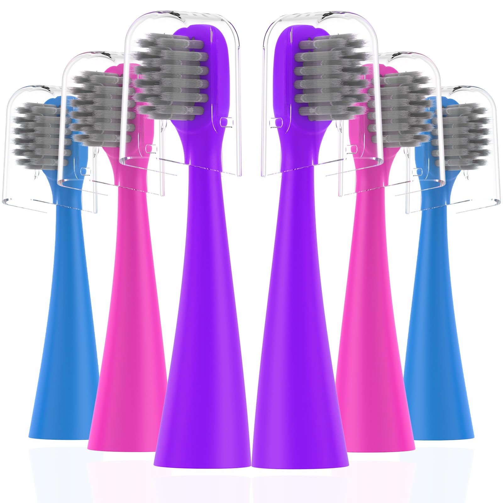 Toothbrushes Replacement Heads Compatible with Burst Kids Electric Toothbrushes, Tri-Color Set (Blue, Purple, Pink), 6-Pack