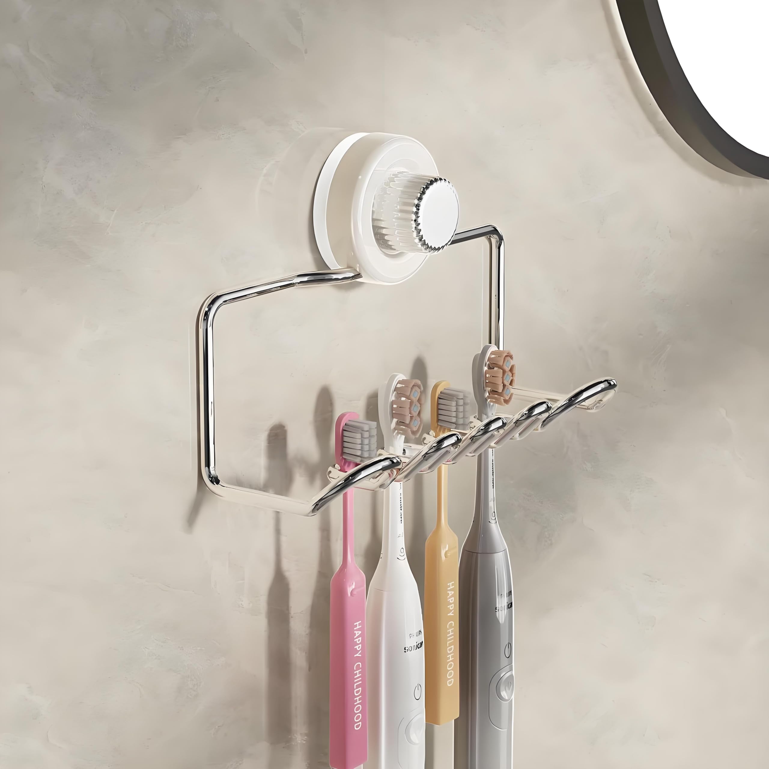 Suction Cup Toothbrush Holders, Stainless Steel Wall Mounted Electric Toothbrush Holder for Bathroom, 4 Slots Removable Bathroom A