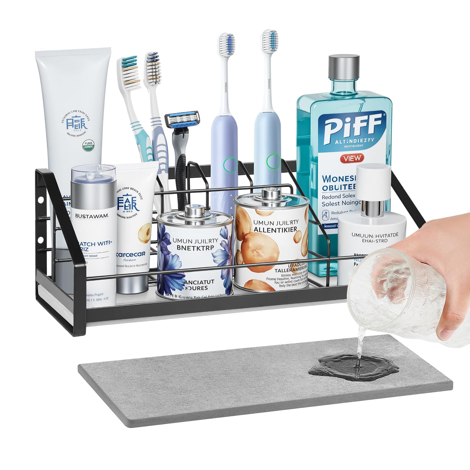 Toothbrush Holder with Instant Drying Diatomite Base – Bathroom Countertop Organizer for Electric Toothbrush, Toothpaste, Sink Acc
