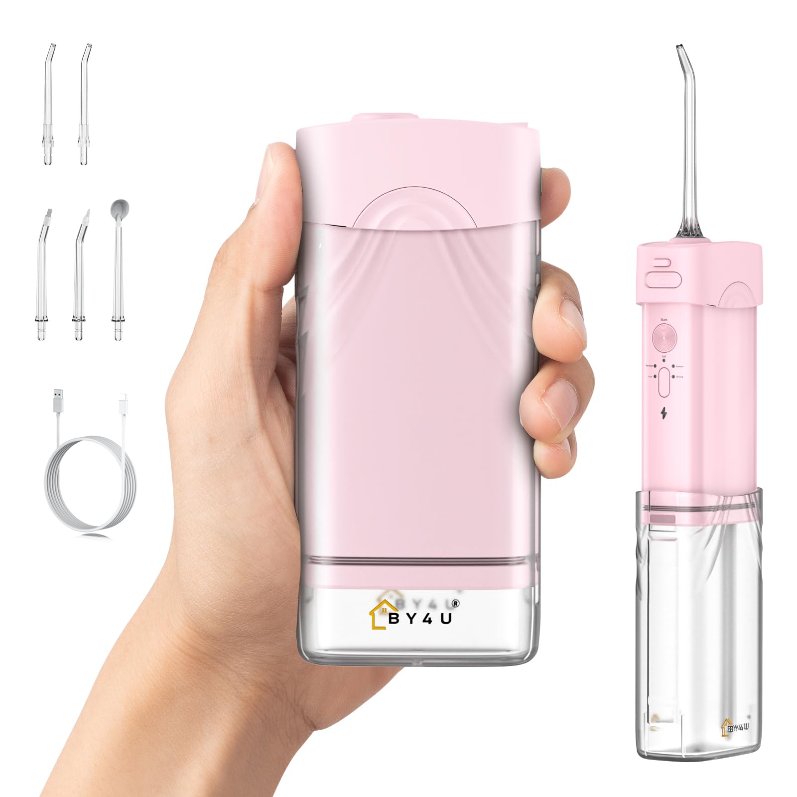Irrigador dental de agua recargable, 6.8 fl oz, irrigador oral de dientes portátil, 5 puntas de chorro, IPX7 impermeable, tanque d