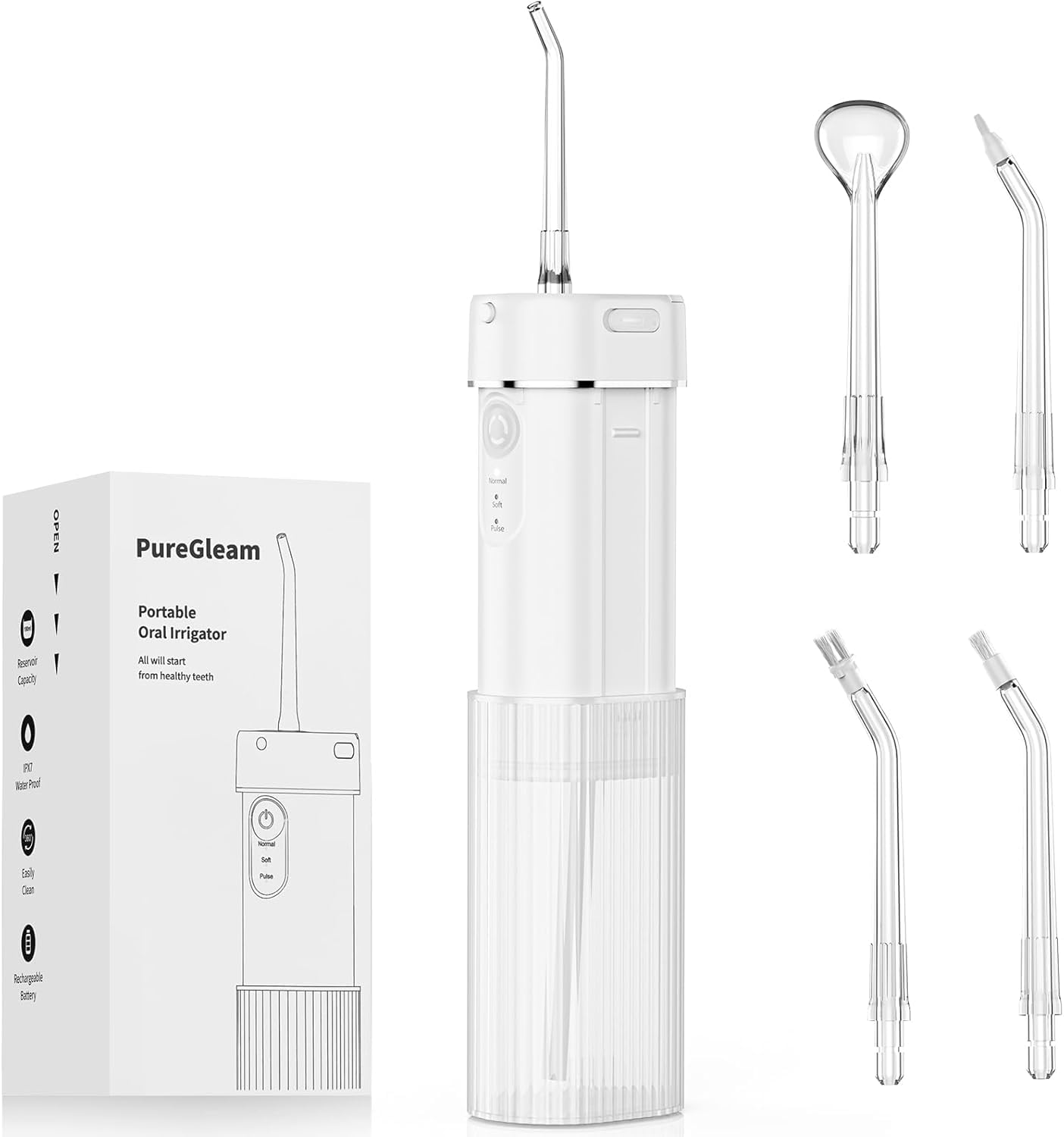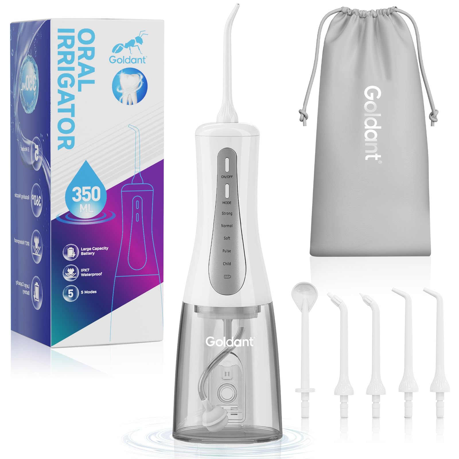 Irrigador dental equipado con dos tanques de agua para el hogar y viajes, 3 modos de irrigador bucal dental, portátil, IPX7 imperm