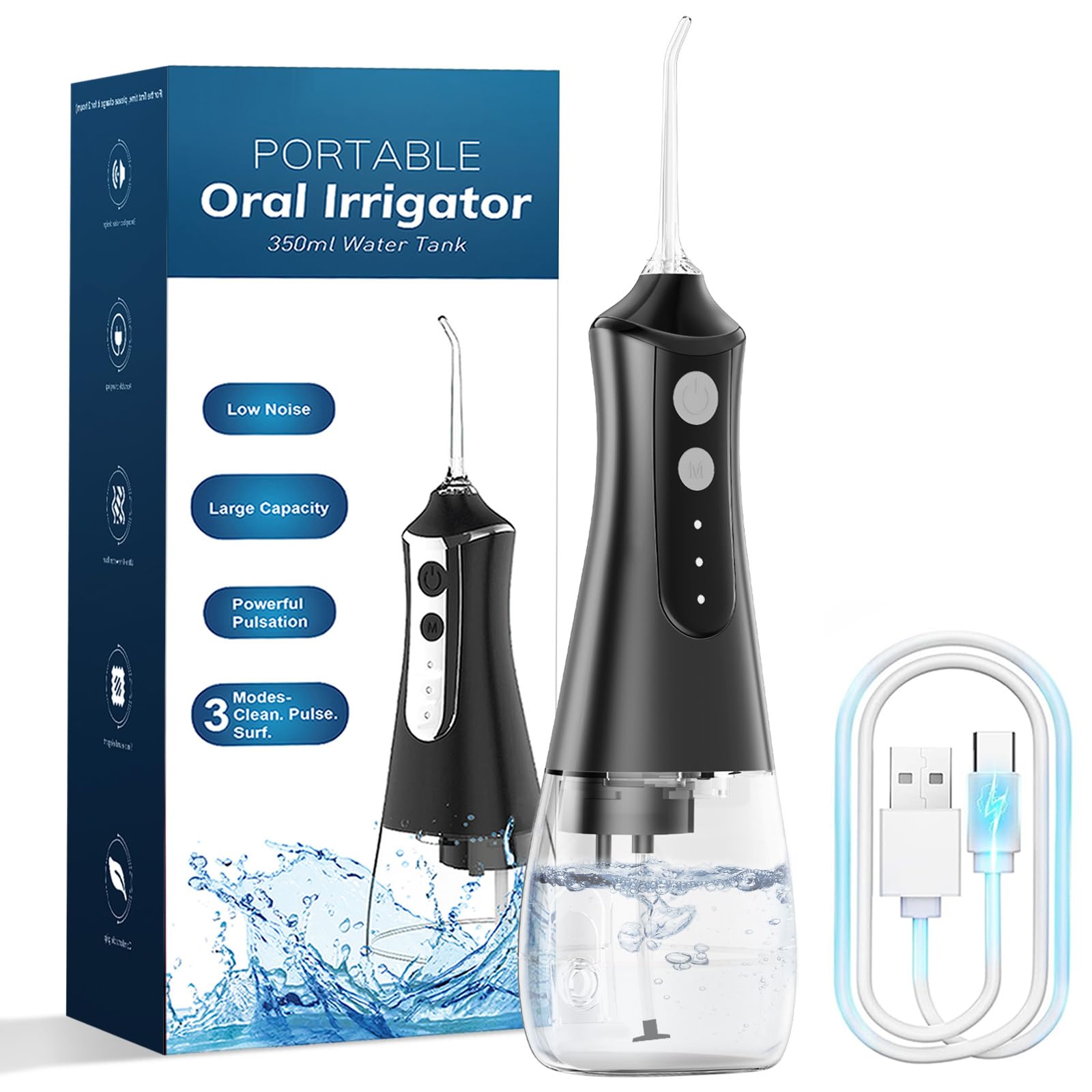 Limpiador de dientes con hilo dental, 4 modos, recargable, portátil, inalámbrico, irrigador oral de 8.8 fl oz, hilo dental eléctri