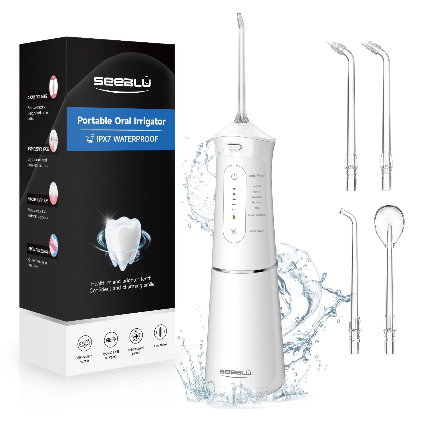 JNGOODS – Irrigador dental de agua, 10.1 fl oz recargable para dientes IPX7, impermeable, 9 modos, irrigador oral portátil. Pantal