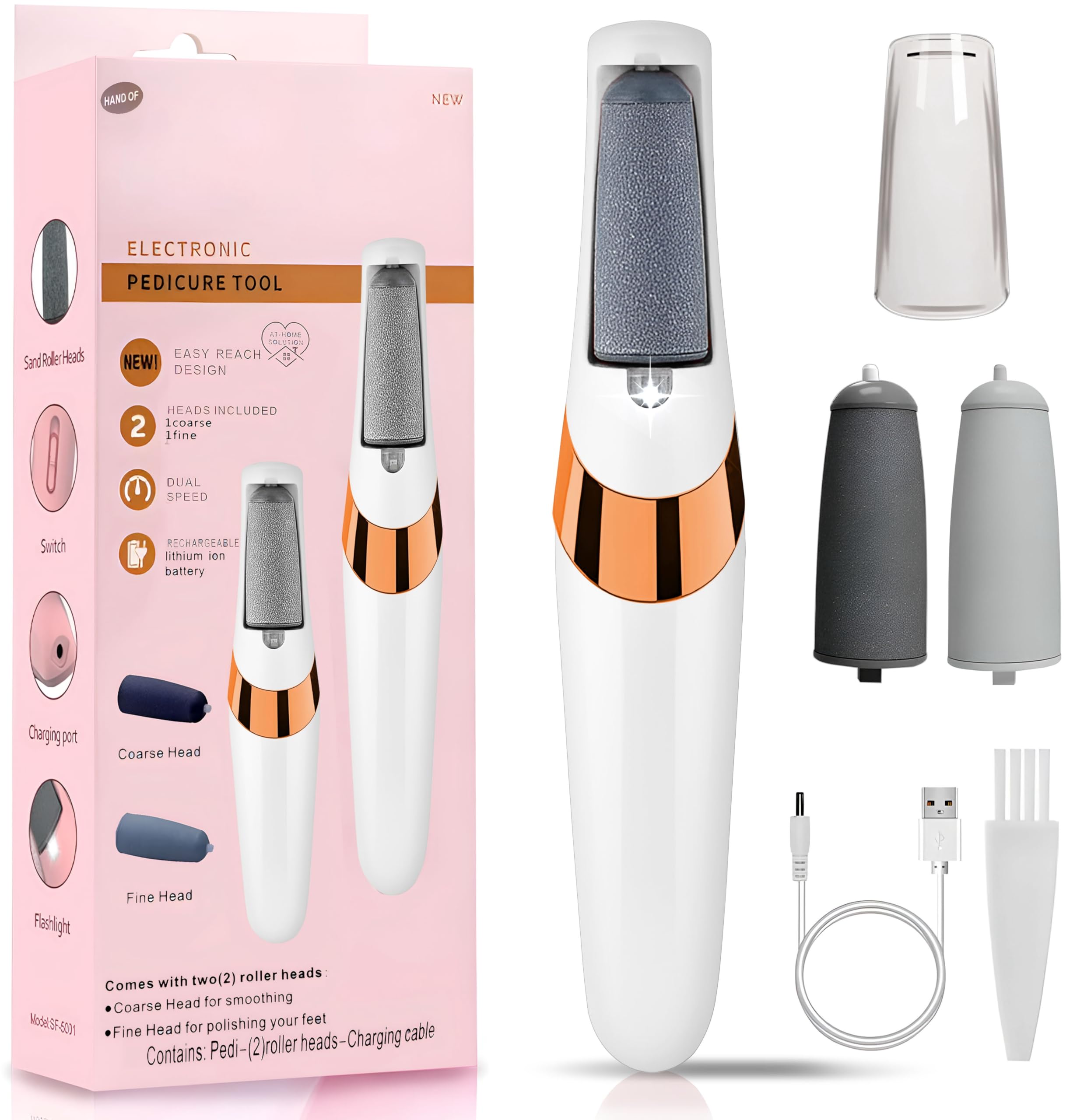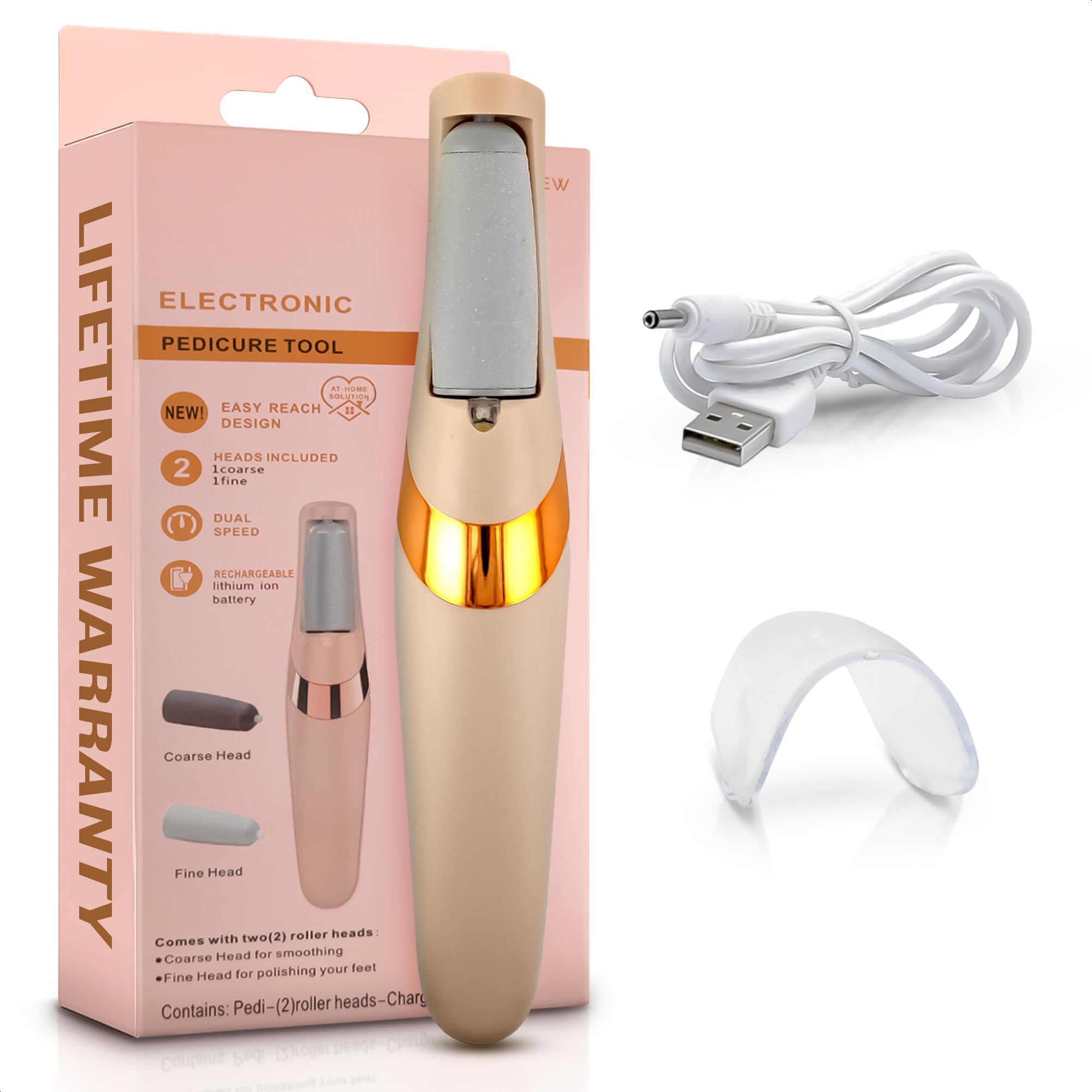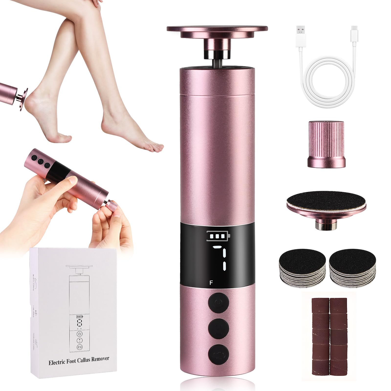 Ranrose Removedor eléctrico de callos de pies: removedor eléctrico recargable de callos para pies, herramientas de pedicura 2 en 1