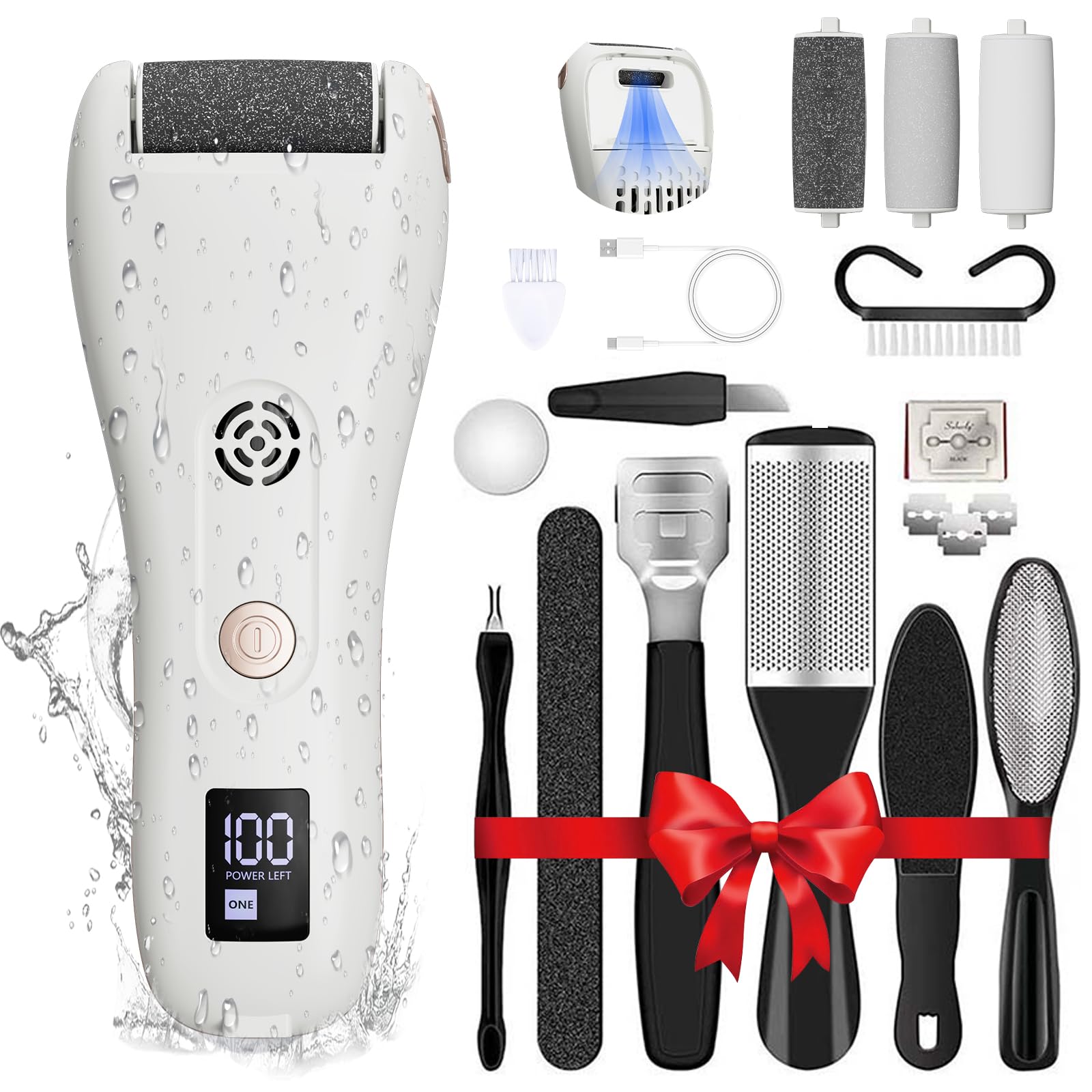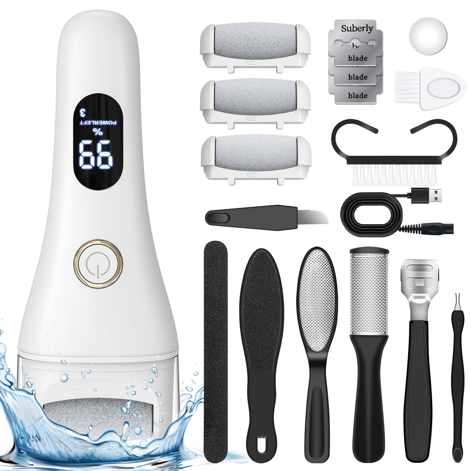 Removedor eléctrico de callos de pies 14 en 1, kit de pedicura recargable, herramientas para el cuidado de los pies con 3 rodillos