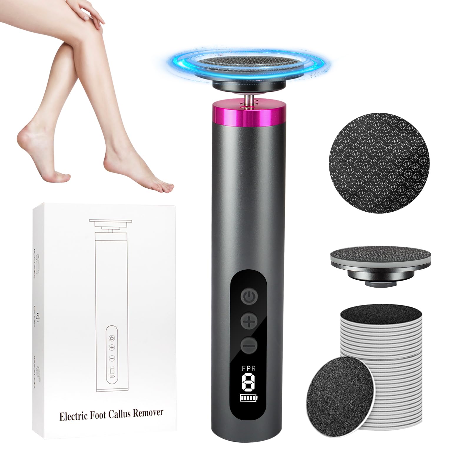 Removedor de callos eléctrico 2 en 1, lijadora de pies ajustable de 9 velocidades con pantalla LED, molinillo eléctrico de pie con