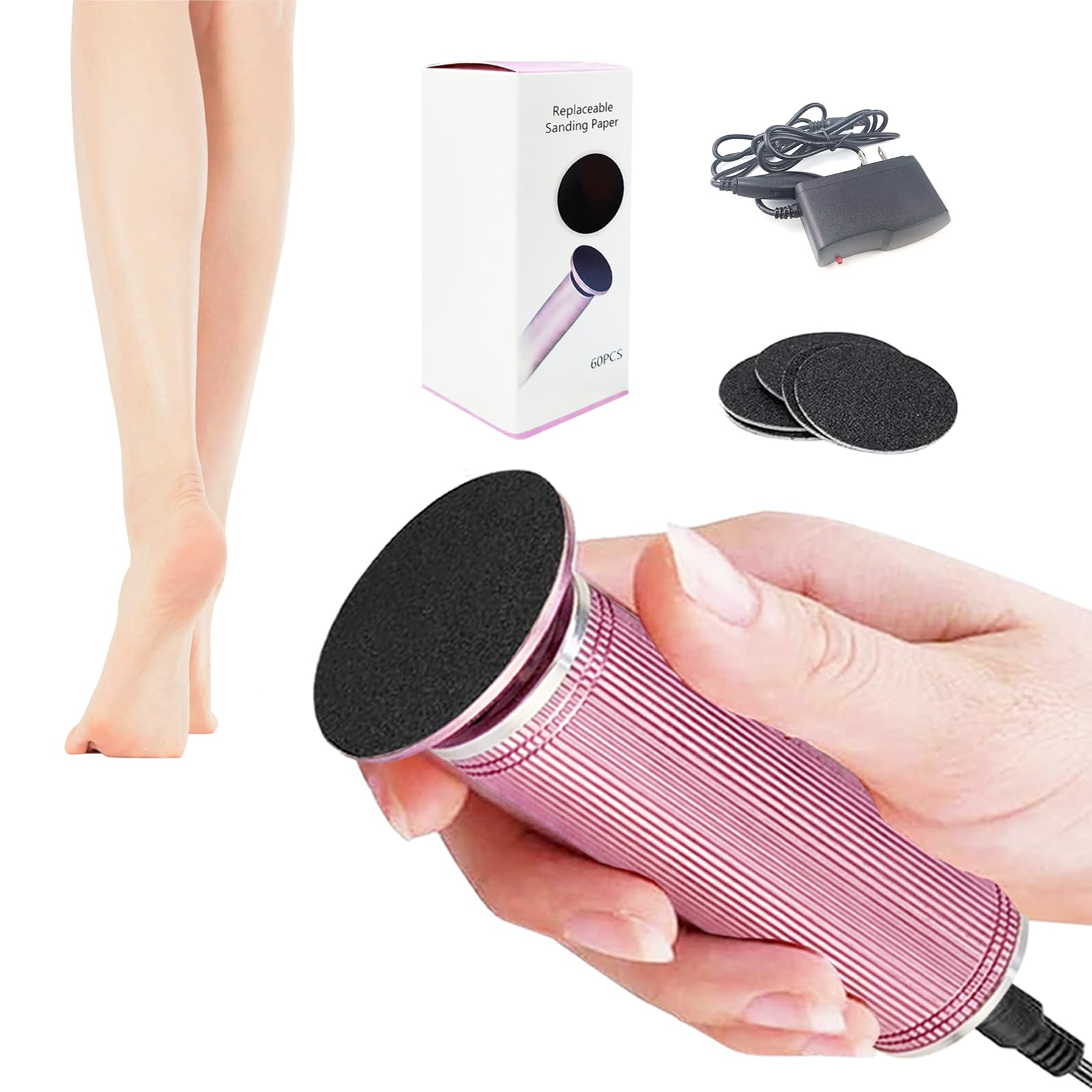 Removedor eléctrico de callos de pies, limador eléctrico de pies con 60 piezas de papel de lija de repuesto, lijadora de pie autoa