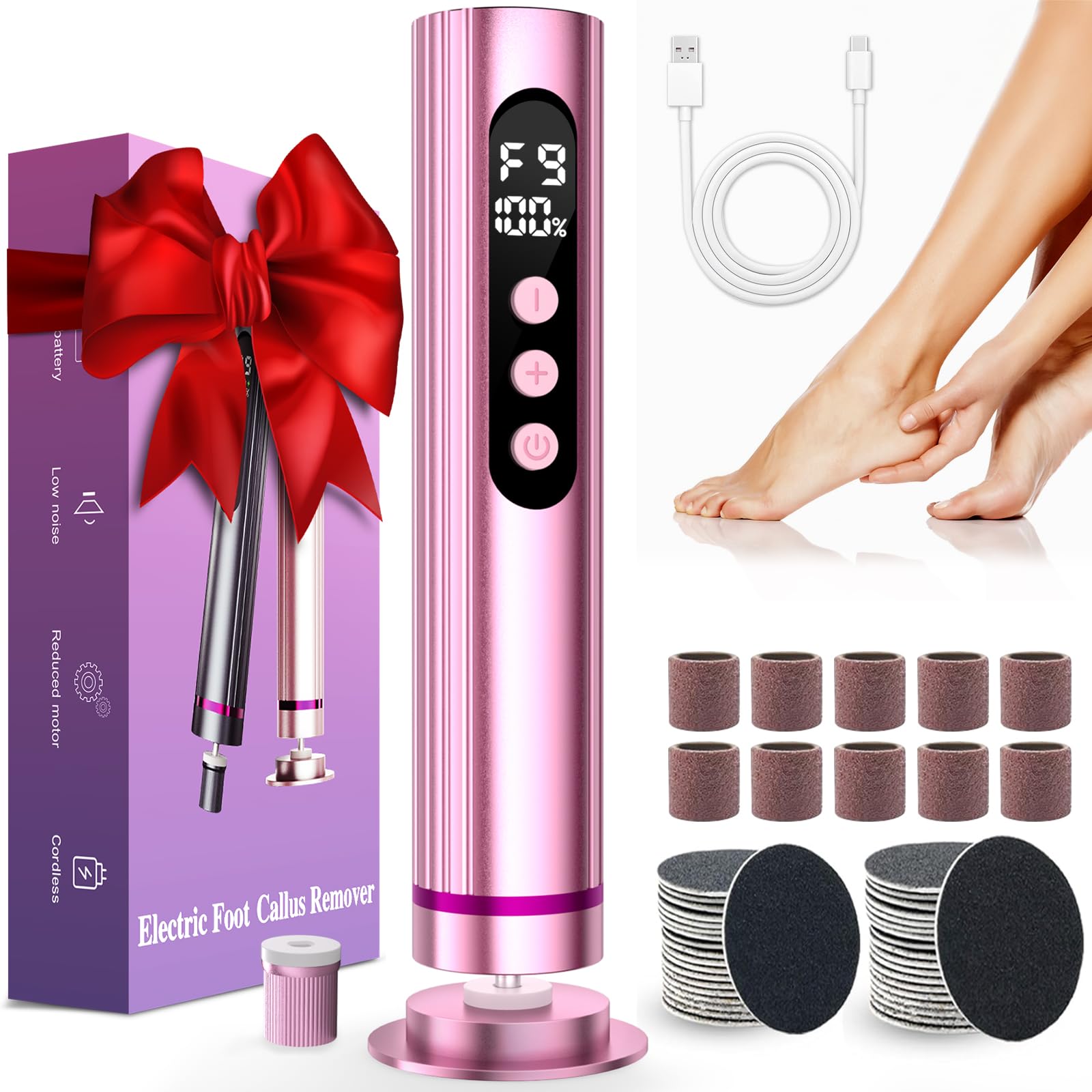 Removedor eléctrico de callos de pies para mujeres y hombres, lima eléctrica de pies con cabezales de acero inoxidable, removedor