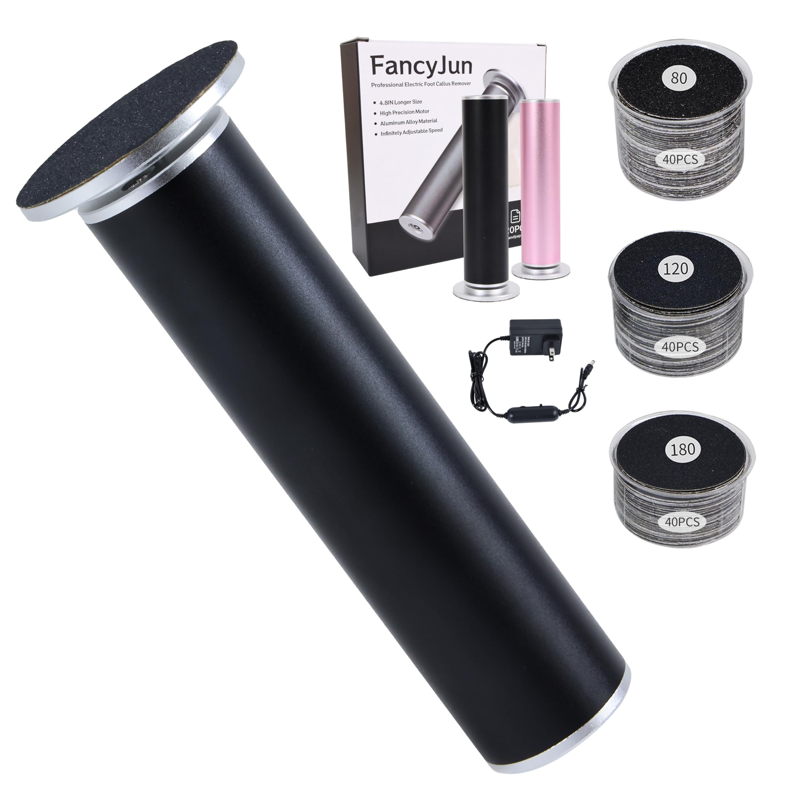 Removedor eléctrico de callos para pies con 120 discos de papel de lija (3 tamaños), removedor profesional de callos de aluminio d