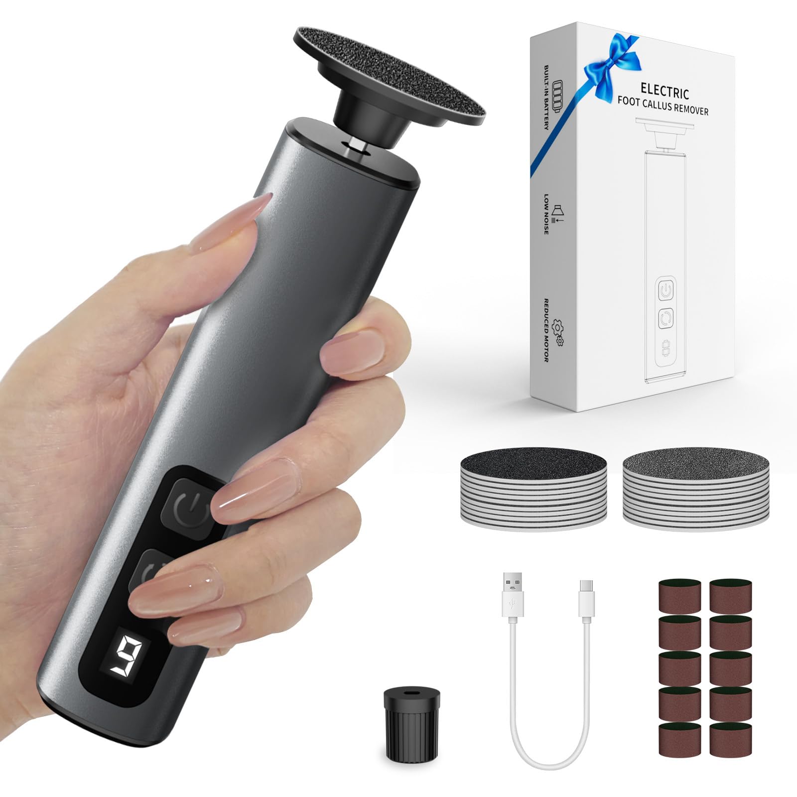 Removedor eléctrico de callos para pies, removedor profesional de callos para pies con 60 discos de papel de lija, herramienta de