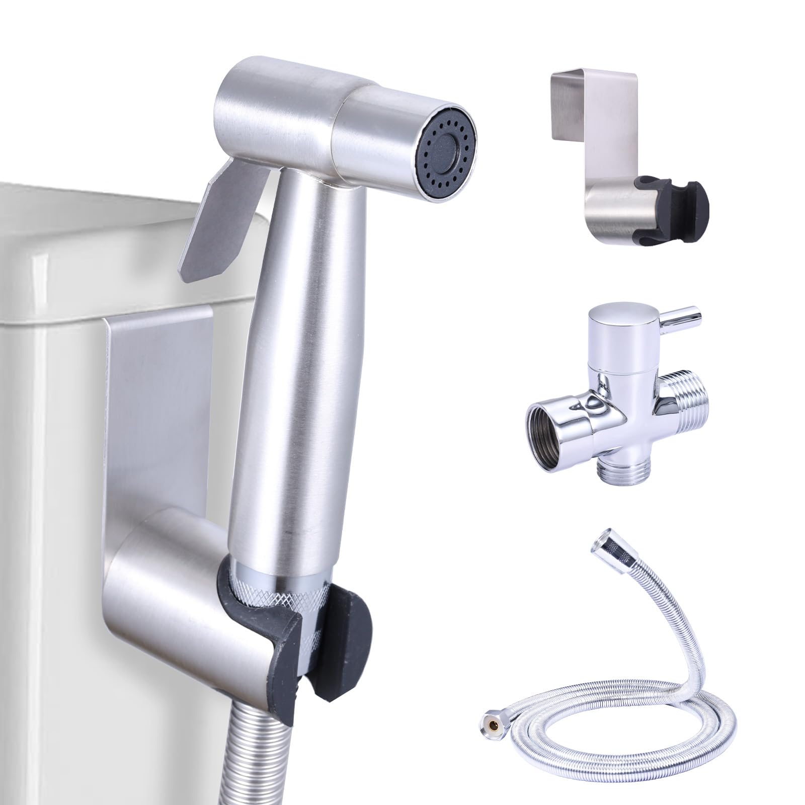 Pulverizador de bidé de mano para inodoro, ducha musulmana, inodoro, bidé, manguera de bidé de mano para inodoro (plateado)
