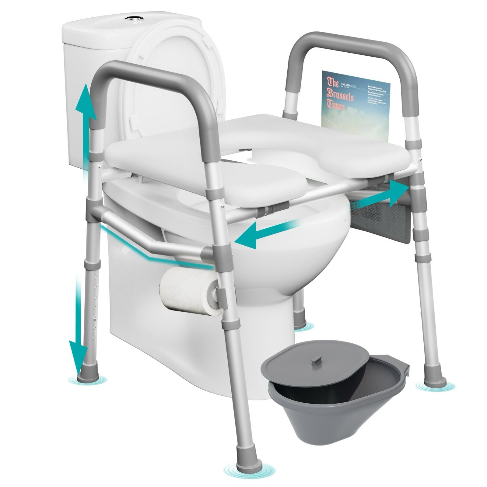 Asiento de inodoro elevado con asas – Capacidad de 500 libras, acolchado, altura y ancho ajustables, elevadores de asiento de inod