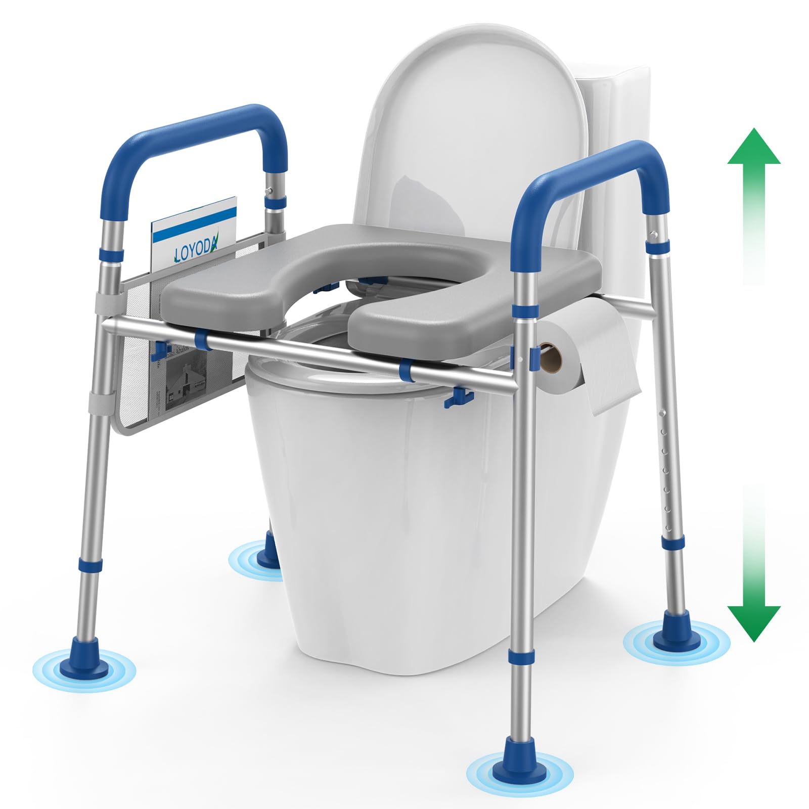 Asiento de inodoro elevado con asas elegible por la FSA, elevador de inodoro con patas de succión más grande mejorado con asas, as