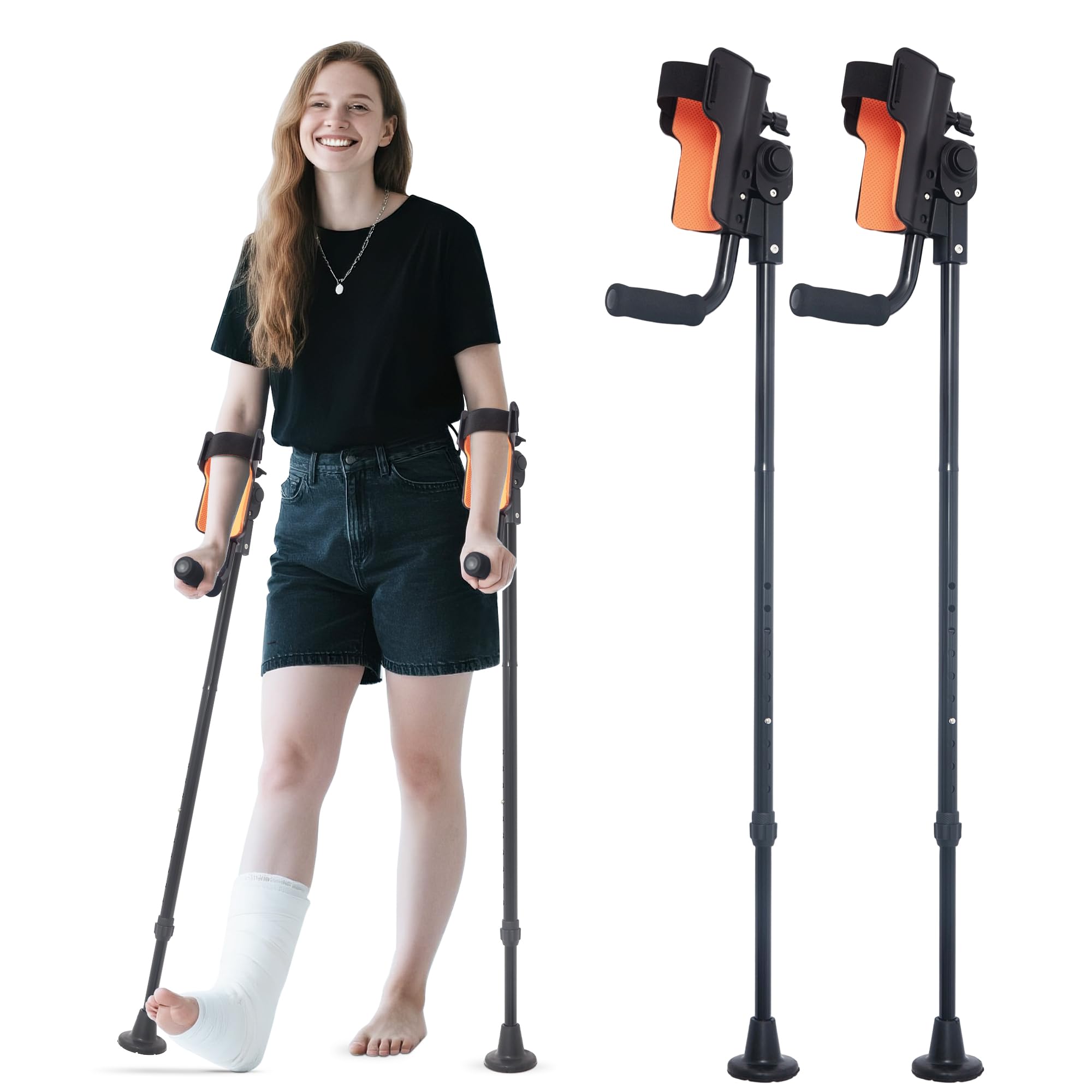 Muletas para antebrazo para adultos (1 par), muletas ajustables para el brazo, muleta para caminar, almohadillas para muletas de a
