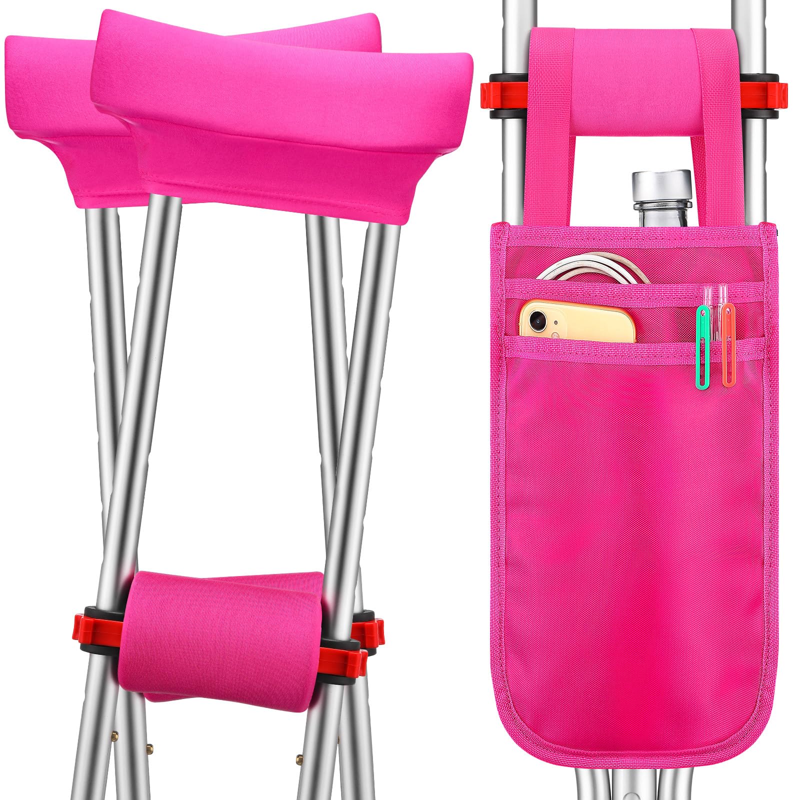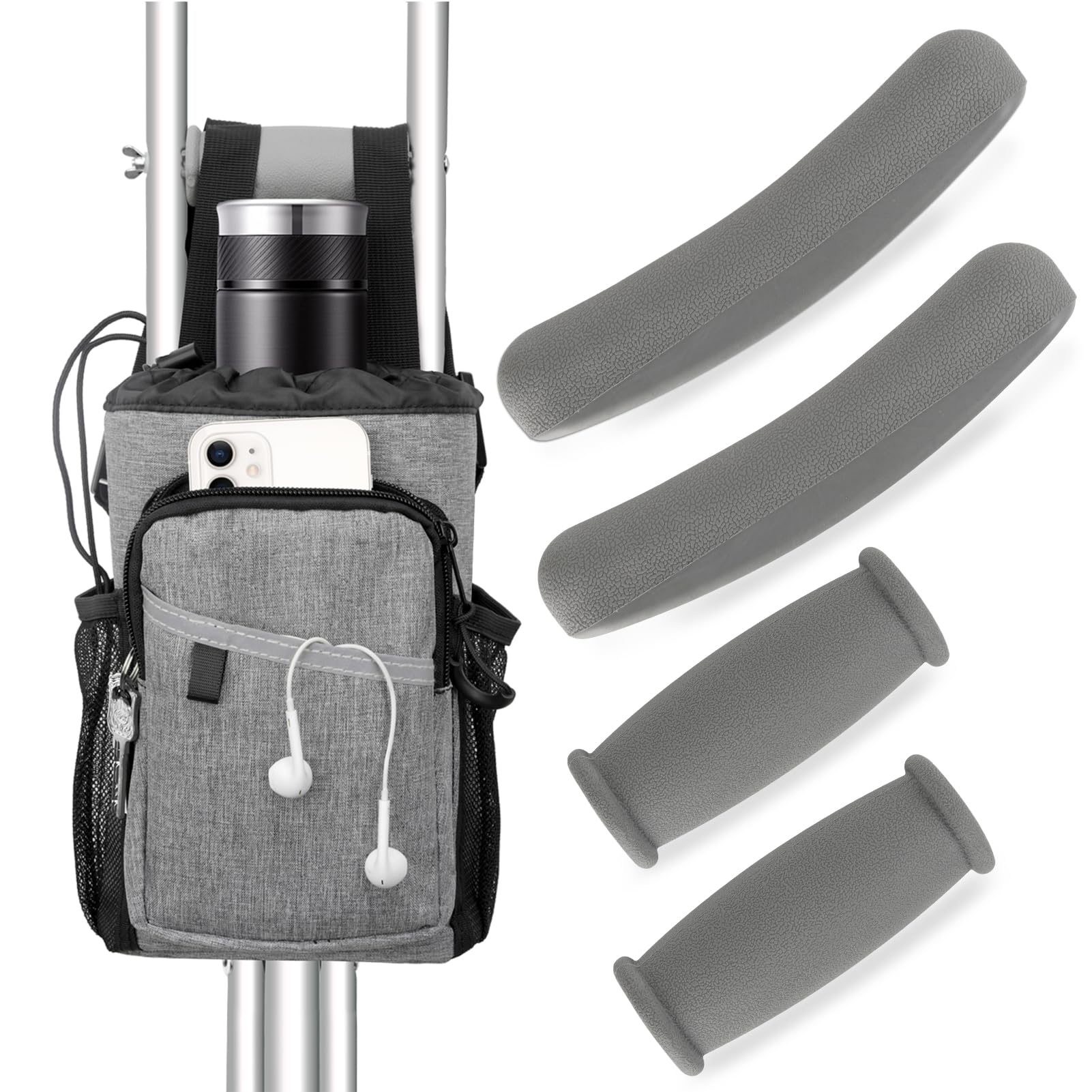 Juego de 5 bolsas de muletas, almohadillas para muletas y bolsa, agarres de mano, almohadillas para muletas, acolchado cómodo para