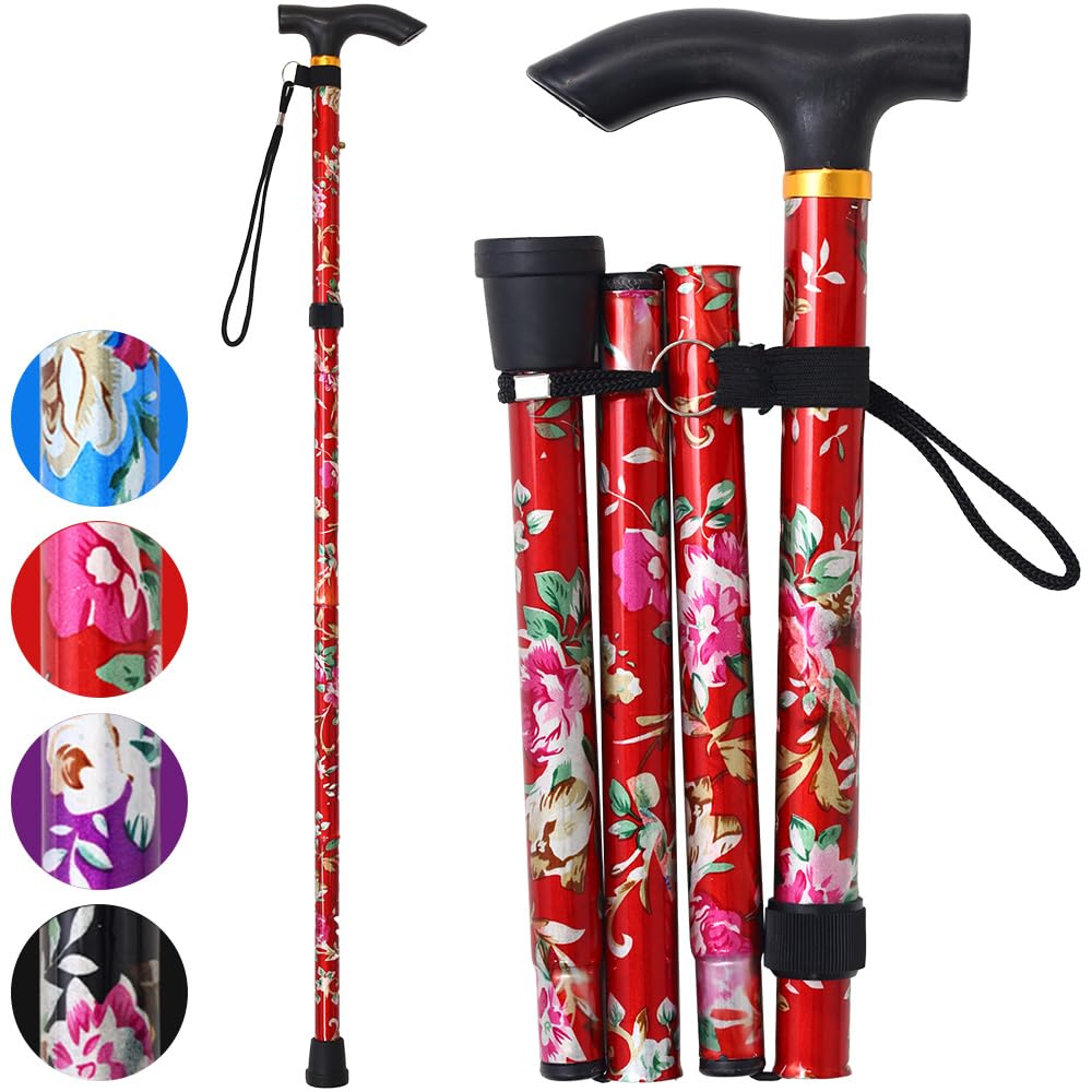 SPRING SEAON Bastón plegable para hombres y mujeres, ligero, ajustable con mango cómodo, bastón plegable compacto y portátil para