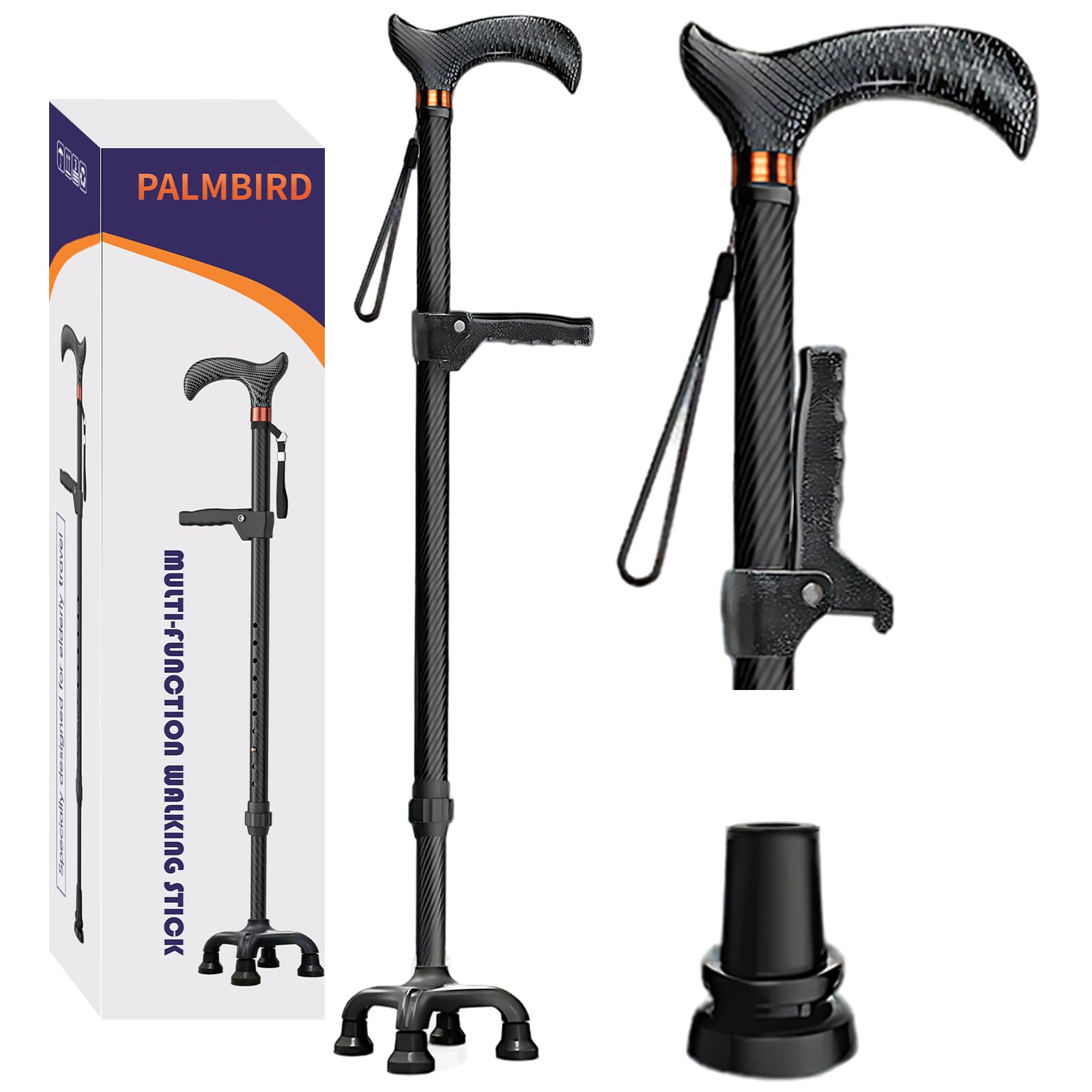 PALMBIRD – Bastón ajustable de fibra de carbono, diseño de doble mango con barra de ajuste de altura de 10 niveles, base de goma a