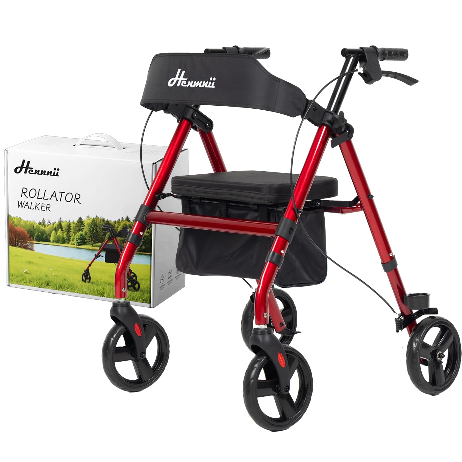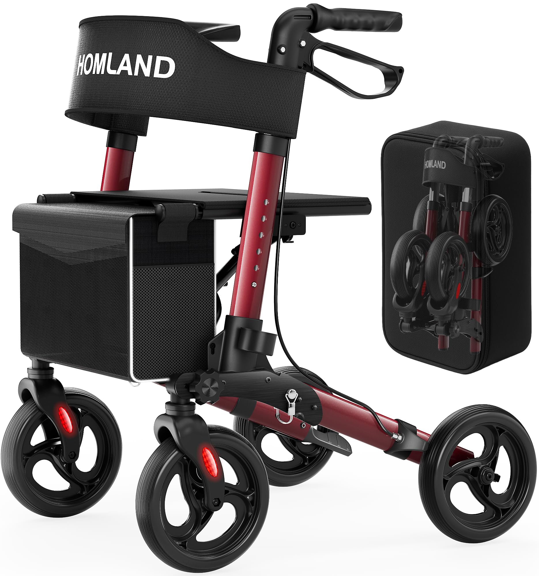 Andadores con ruedas para personas mayores con asiento, andador plegable, ruedas de 8 pulgadas de aluminio ligero