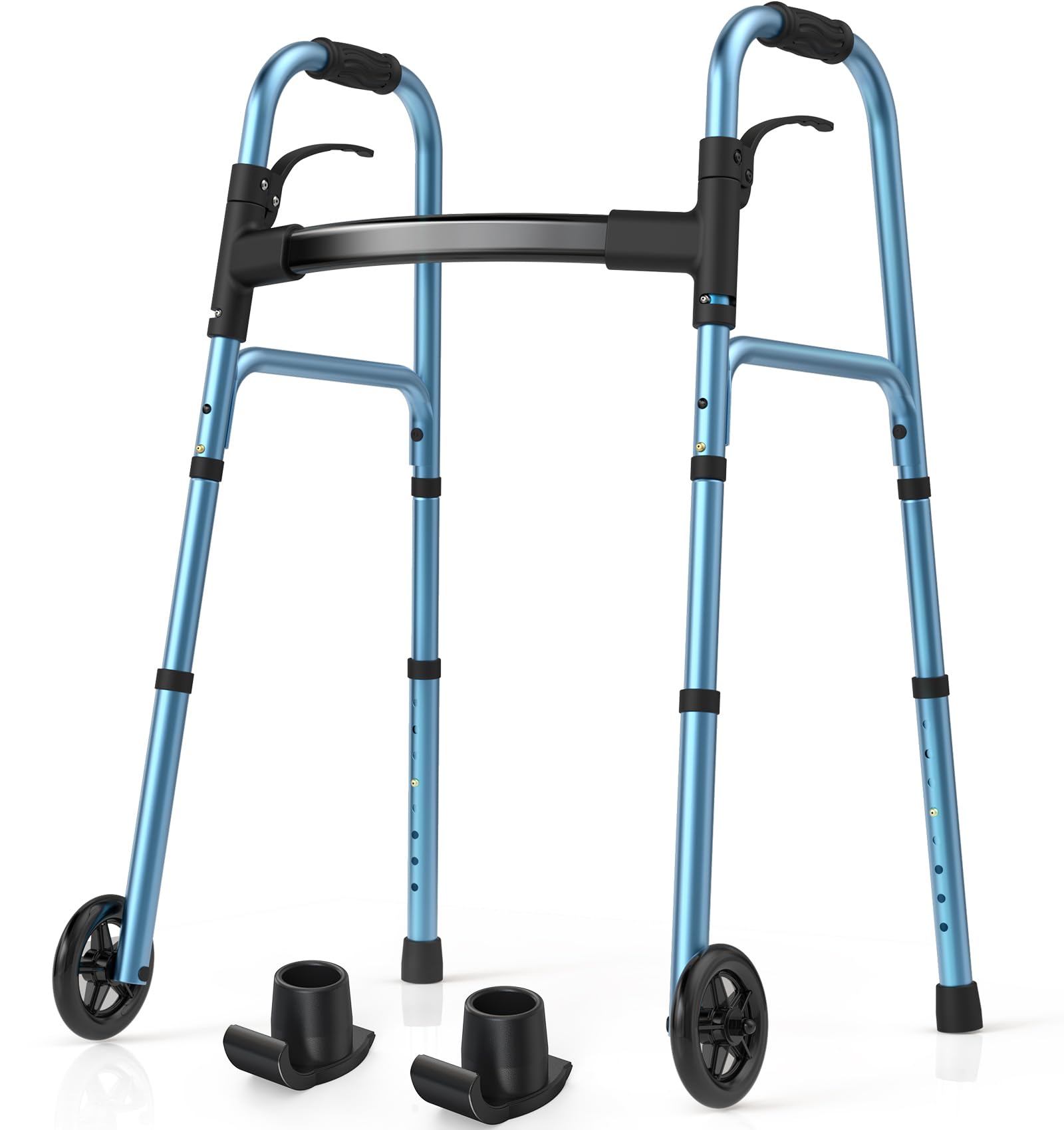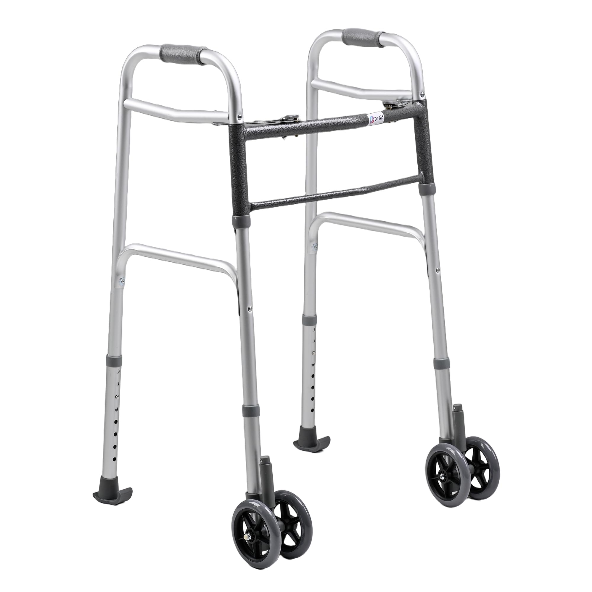 Dr. Aid Andador plegable prémium con ruedas, freno automático de 5 pulgadas, caminador de rueda delantera doble, andadores ligeros