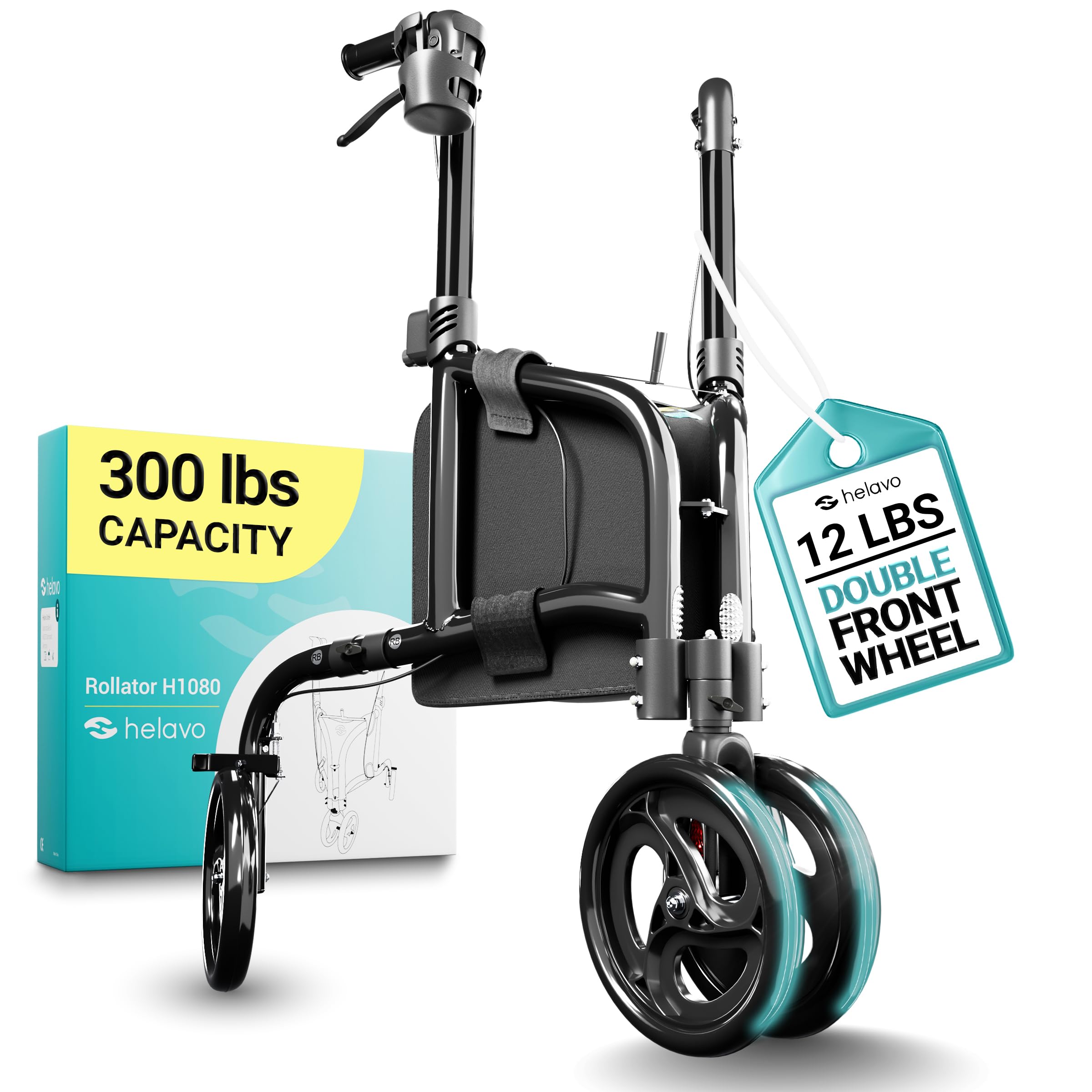 Helavo Andador con ruedas de 3 ruedas para personas mayores, 3 ruedas más estables, ruedas de 8 pulgadas, ultraligero y plegable p