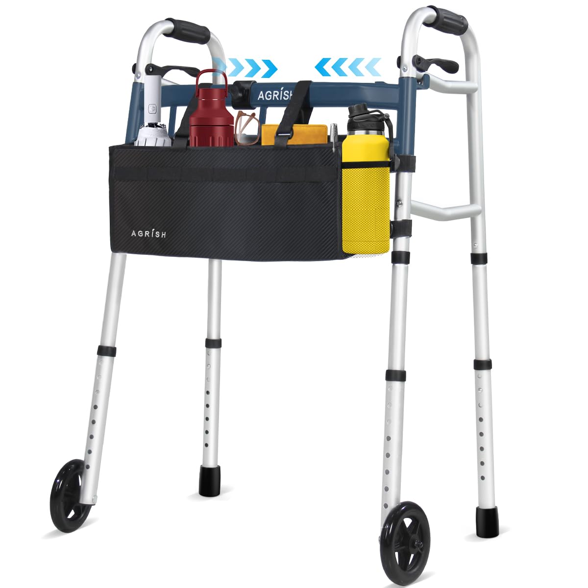 Agrish Caminantes estrechos con bolsa de almacenamiento, caminador ajustable en altura de ancho, andadores plegables ligeros para