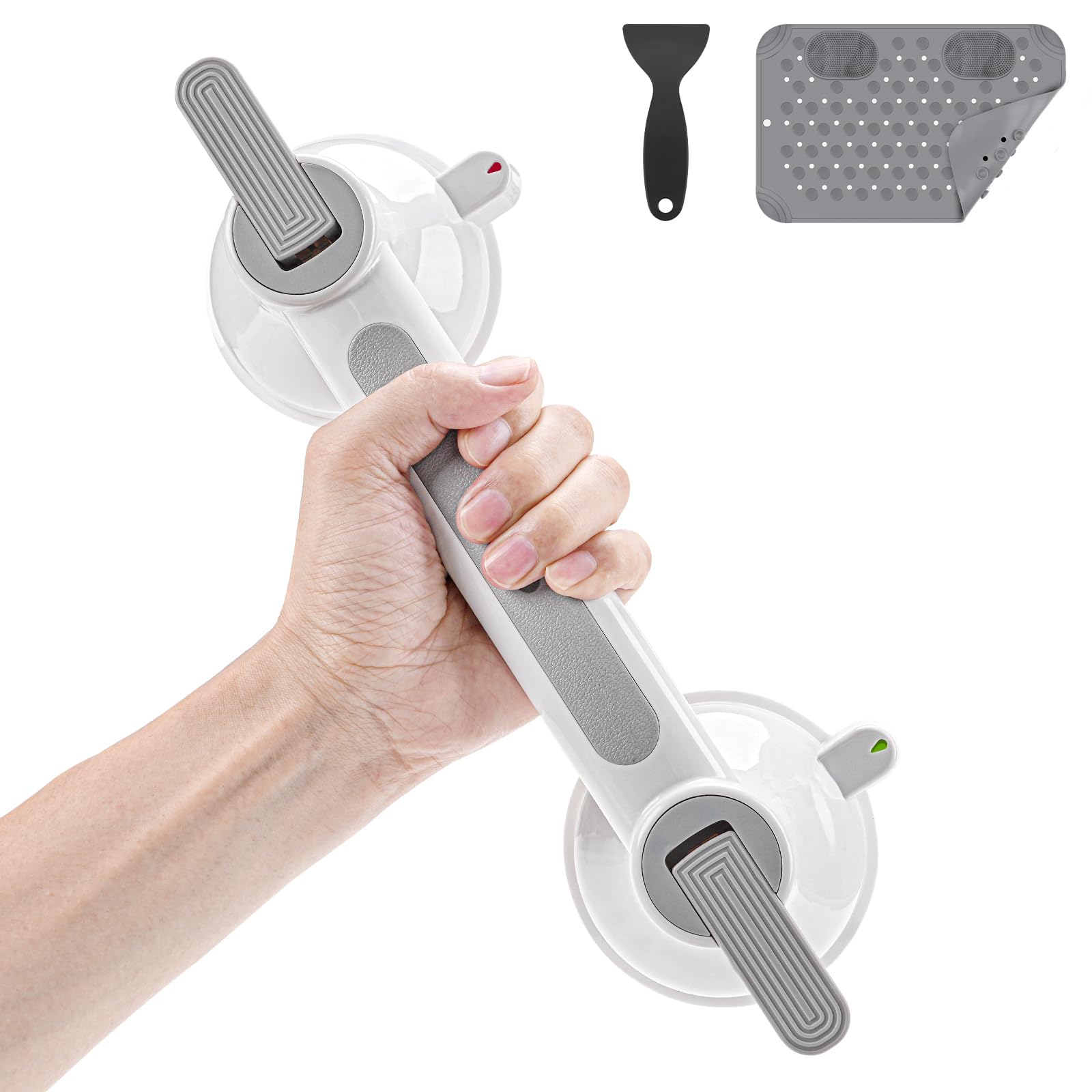 Barra de agarre con ventosa para ducha con indicadores, instalación sin herramientas, mango estable para ayuda de equilibrio para