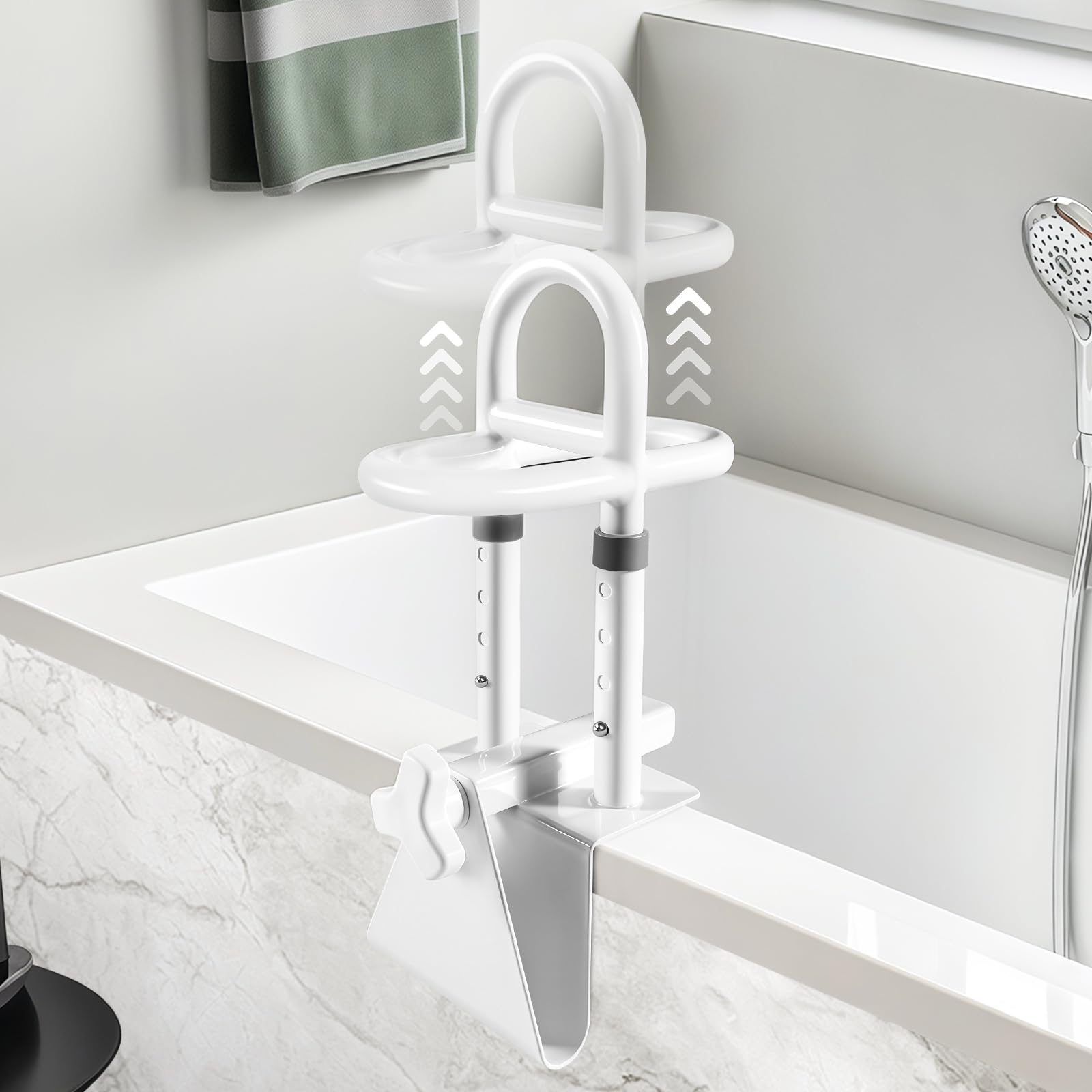 Barandilla de seguridad ajustable para bañera y barra de agarre para ducha para personas mayores, soporte resistente, altura y anc