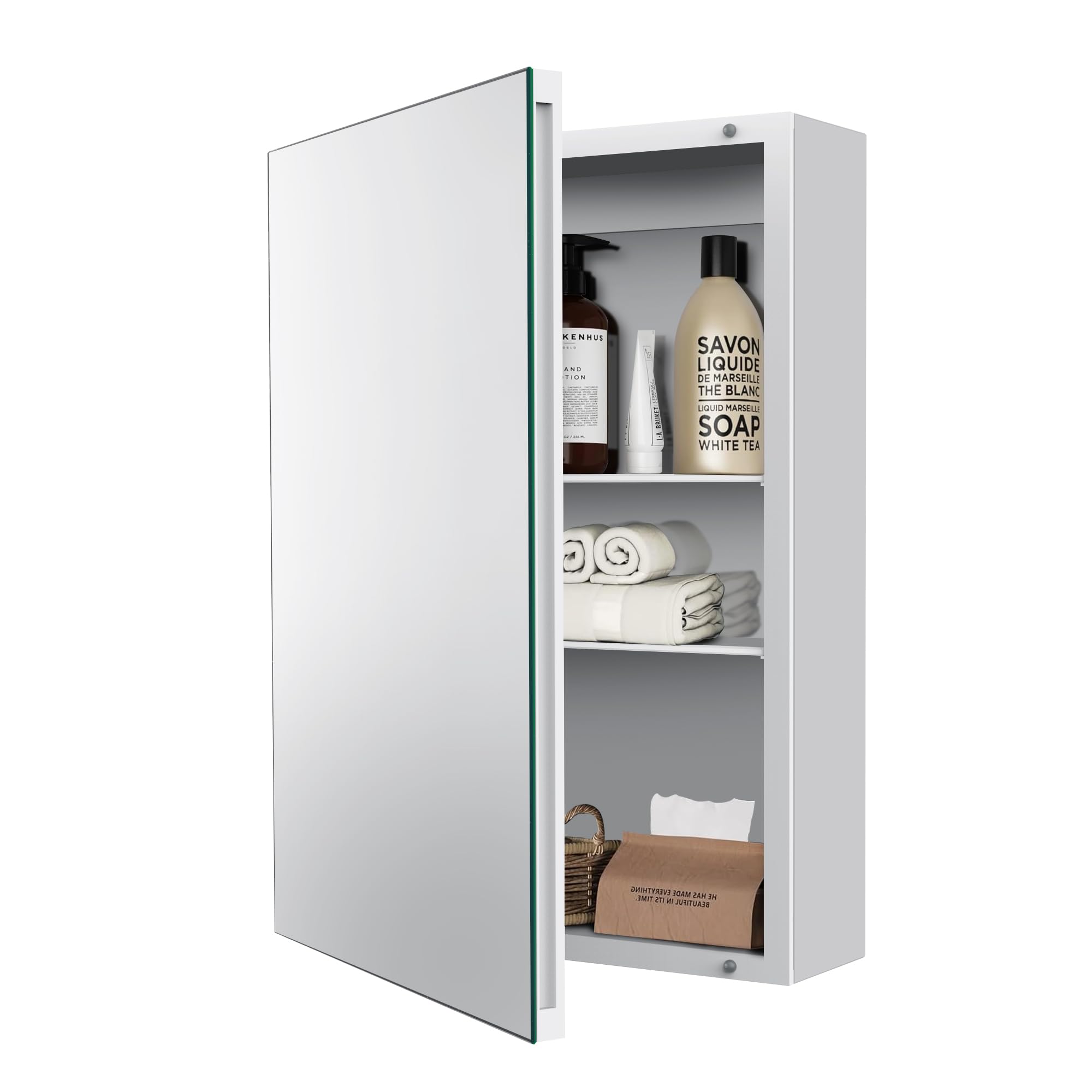 Botiquín de una sola puerta de 20 x 26 pulgadas con espejo, estantes ajustables y marco de aluminio duradero, espejos multifunción