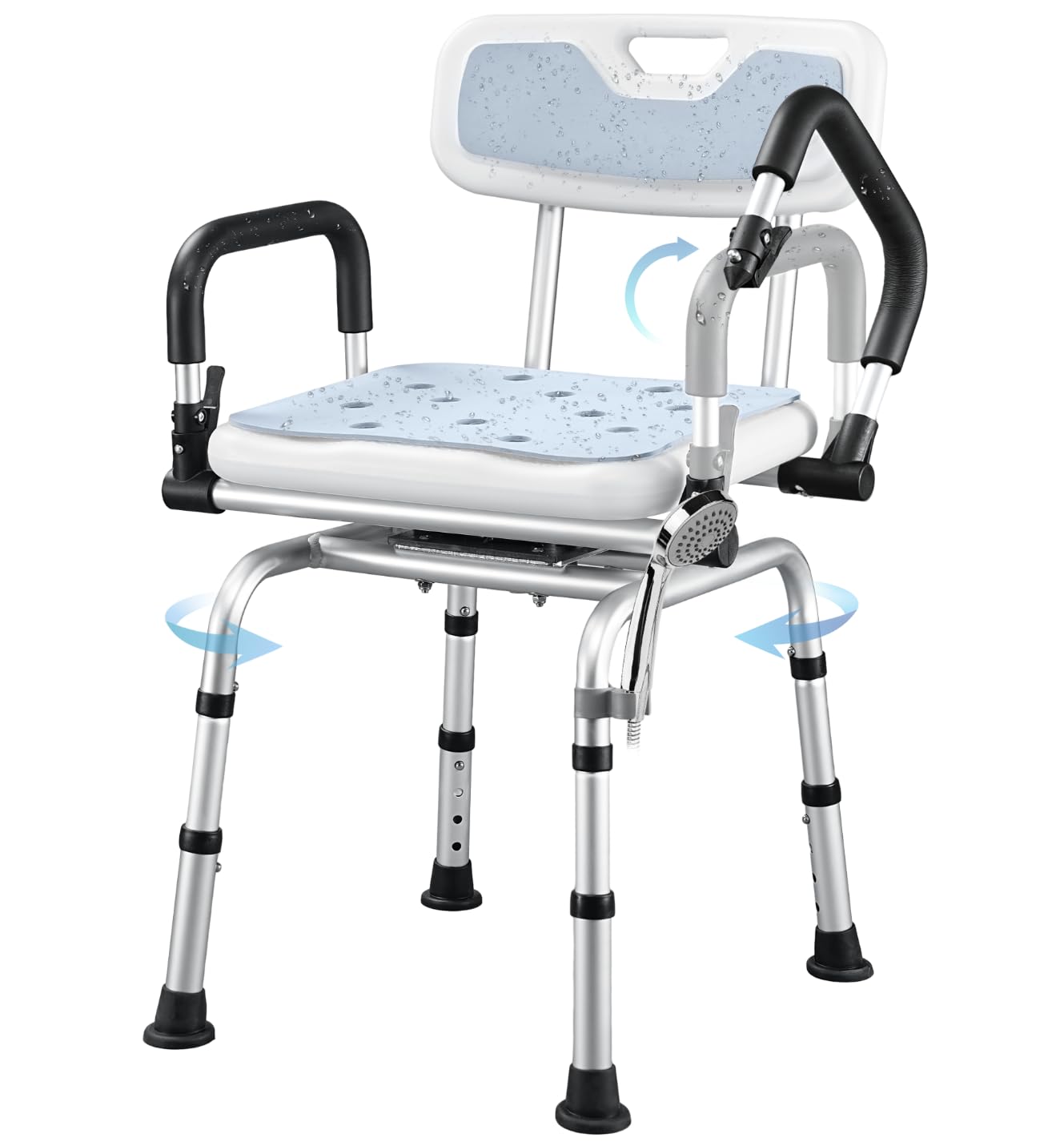Silla de ducha giratoria con brazos elevables, silla de baño giratoria Hybodies con altura ajustable, taburete de transferencia de