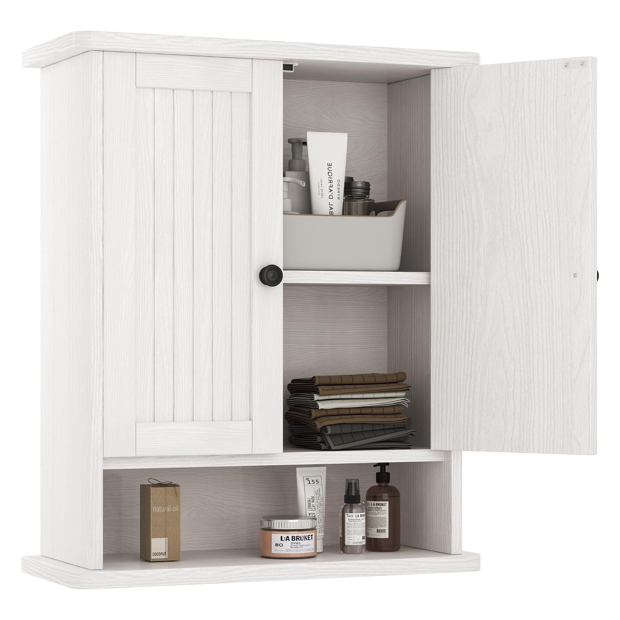 ChooChoo Armario de pared de baño, botiquín de 2 puertas con estantes ajustables, armario de almacenamiento montado en la pared ac