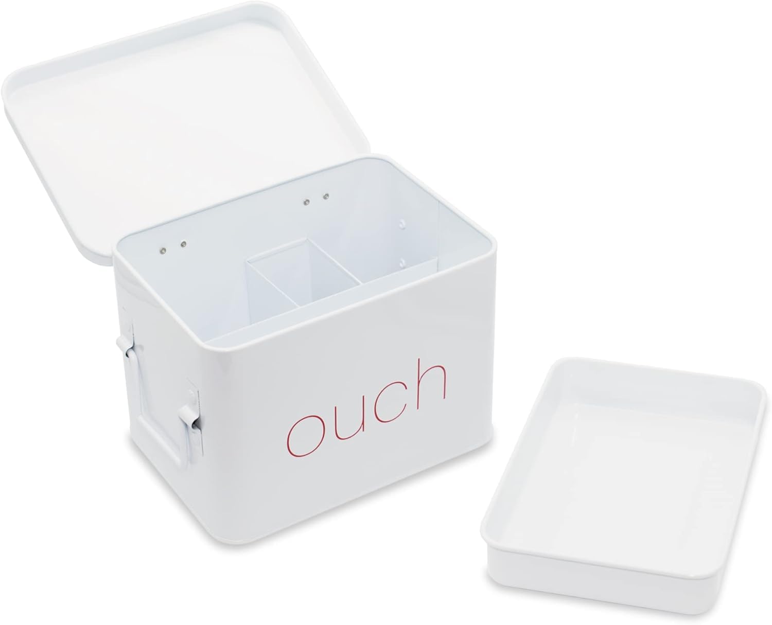 AQ – “OUCH Caja de primeros auxilios de metal, color blanco – Caja de almacenamiento médico y de primeros auxilios con compartimen